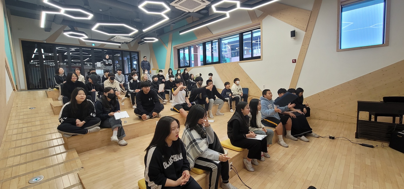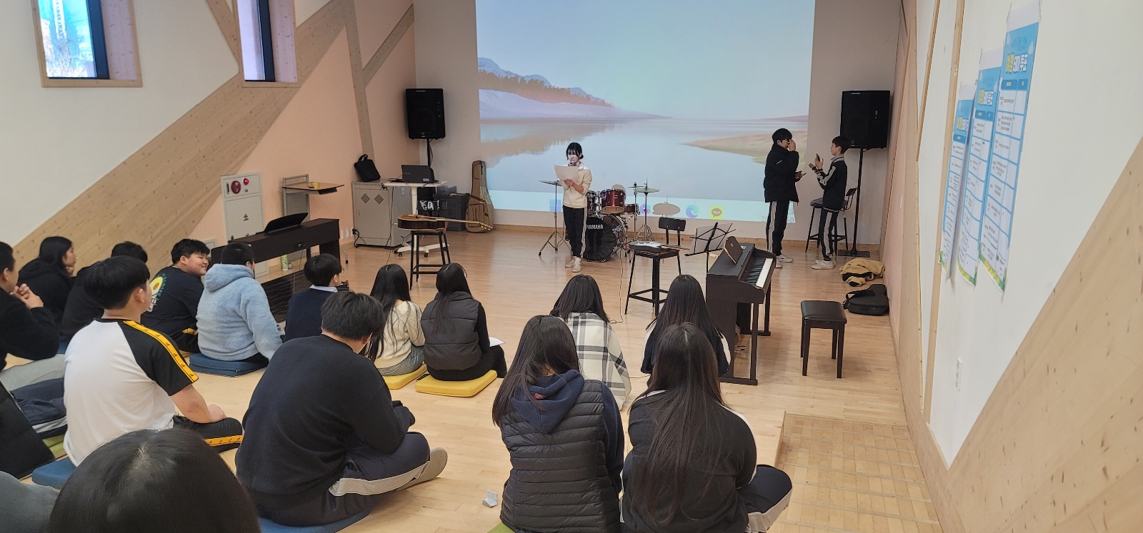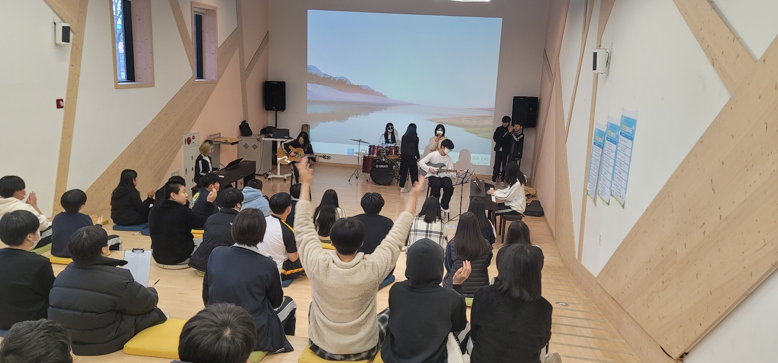 -영어로 1학년 학생들이 진행을 보며, 영어 단어 골든벨, 댄스, 밴드 공연