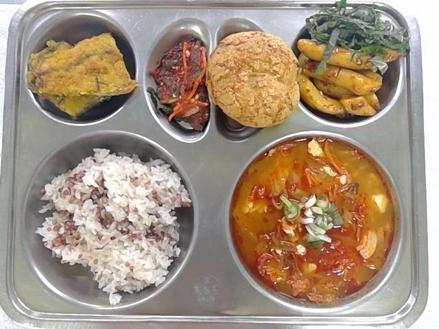 차수수밥1쿠키번1(1.2.5.6)순두부찌개1(5.6.9.10)수제깻잎김치(자율).(5.6.13)기름떡볶이1(5.6.13)고등어카레구이1(2.5.6.7.12.13.16.18)