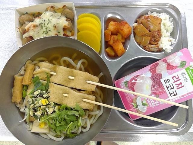 적은밥/볶음김치1(9.13)우동 & 꼬치어묵.(1.2.5.6.7.9.18)단무지1미트볼치즈그라탕(종이트레이)1(1.2.5.6.10.12.13.15.16)깍두기2(9)리치코코음료.