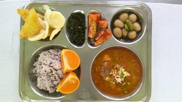 검정쌀밥1돈목살김치찌개1(5.6.9.10)꽈리초메추리알조림1(1.5.6.13.16.18)피쉬앤칩스1(알새우칩)(1.5.6.13)총각김치2(9)천혜향김파래자반(자율)(5)