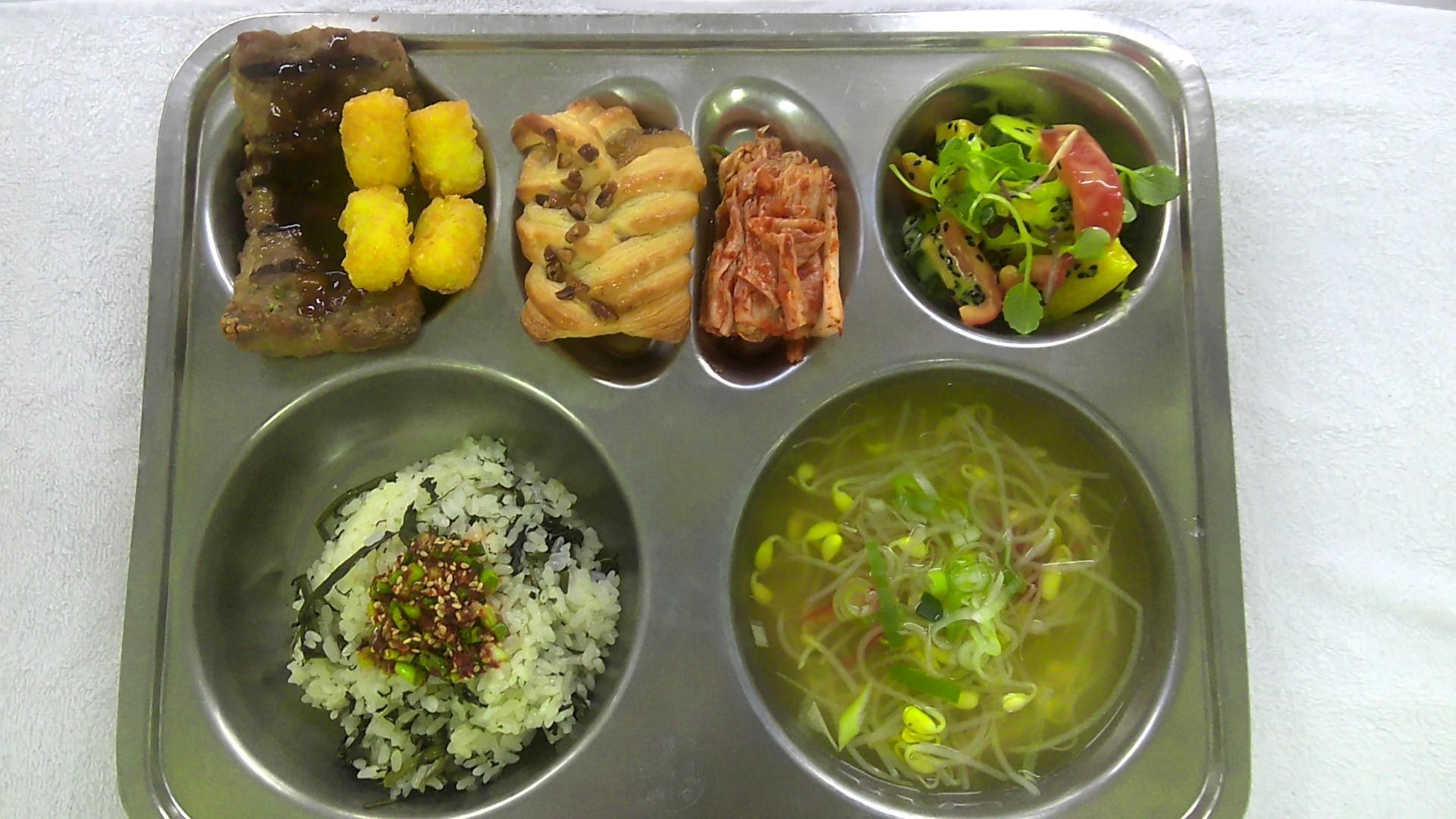 곤드레밥/양념장.(5.6.13)메이플피칸파이1(1.2.5.6.14)맑은콩나물국1(5.6.9)파프리카머스터드소스무침1(1.2.5.6.13)오리스테이크&맛감자.(1.2.5.6.12.13.16)배추김치2(9)