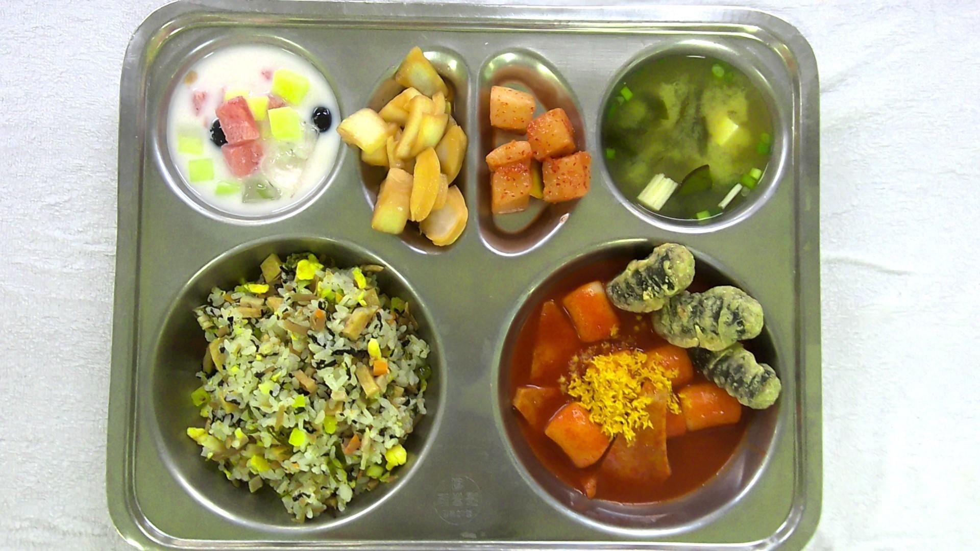 김밥볶음밥1(1.2.5.6.10.13.15.16)미소된장국(소량)1(5.6.9)별콕콕 떡볶이.(1.2.5.6.13)김말이튀김1(1.5.6.16)깍두기2(9)블루베리수박화채.(2.13)양파장아찌(자율)(백리8-중-합천)(5.6.13)
