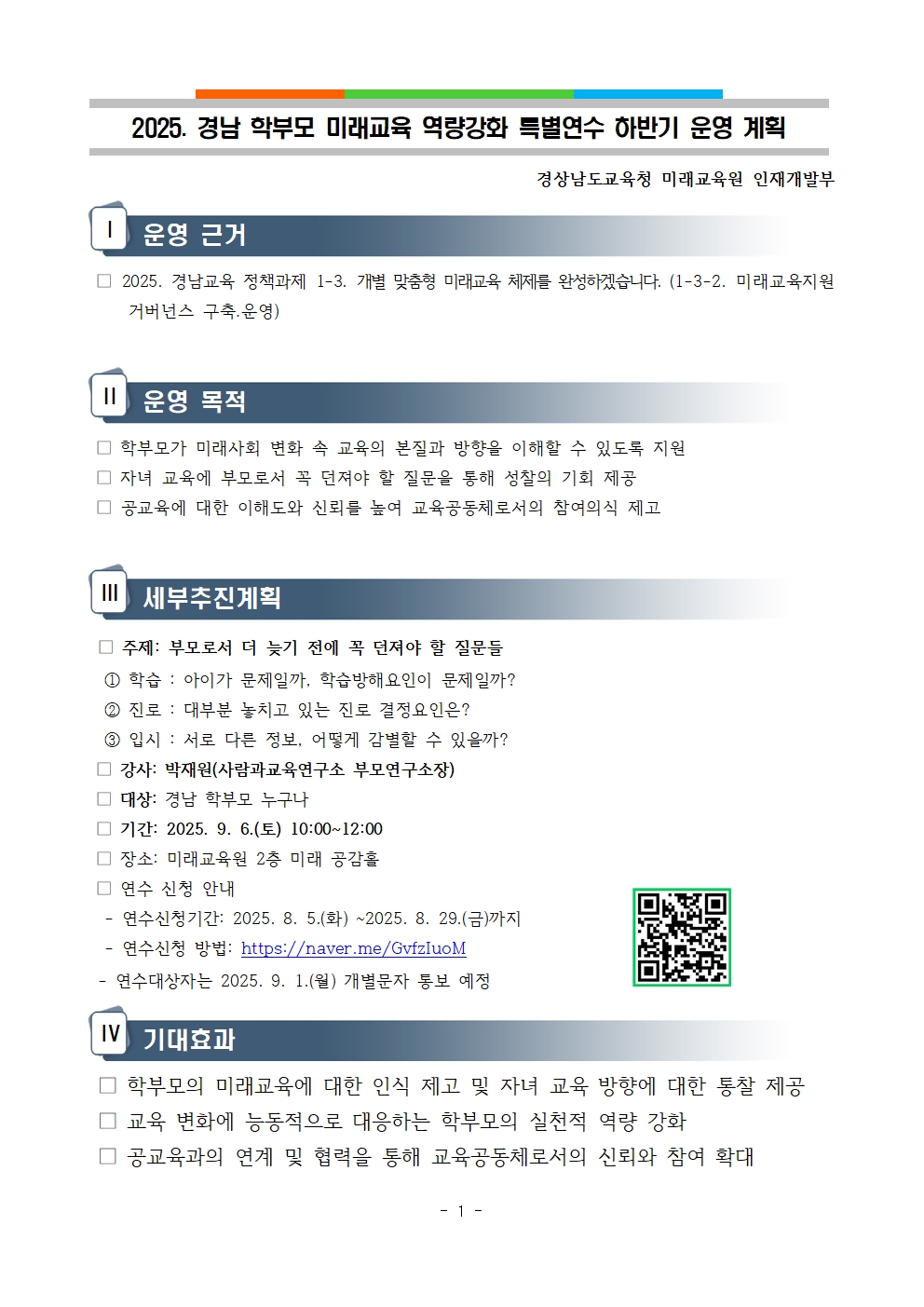 [안내] 2025. 경남 학부모 미래교육 역량 강화 특별연수 개최