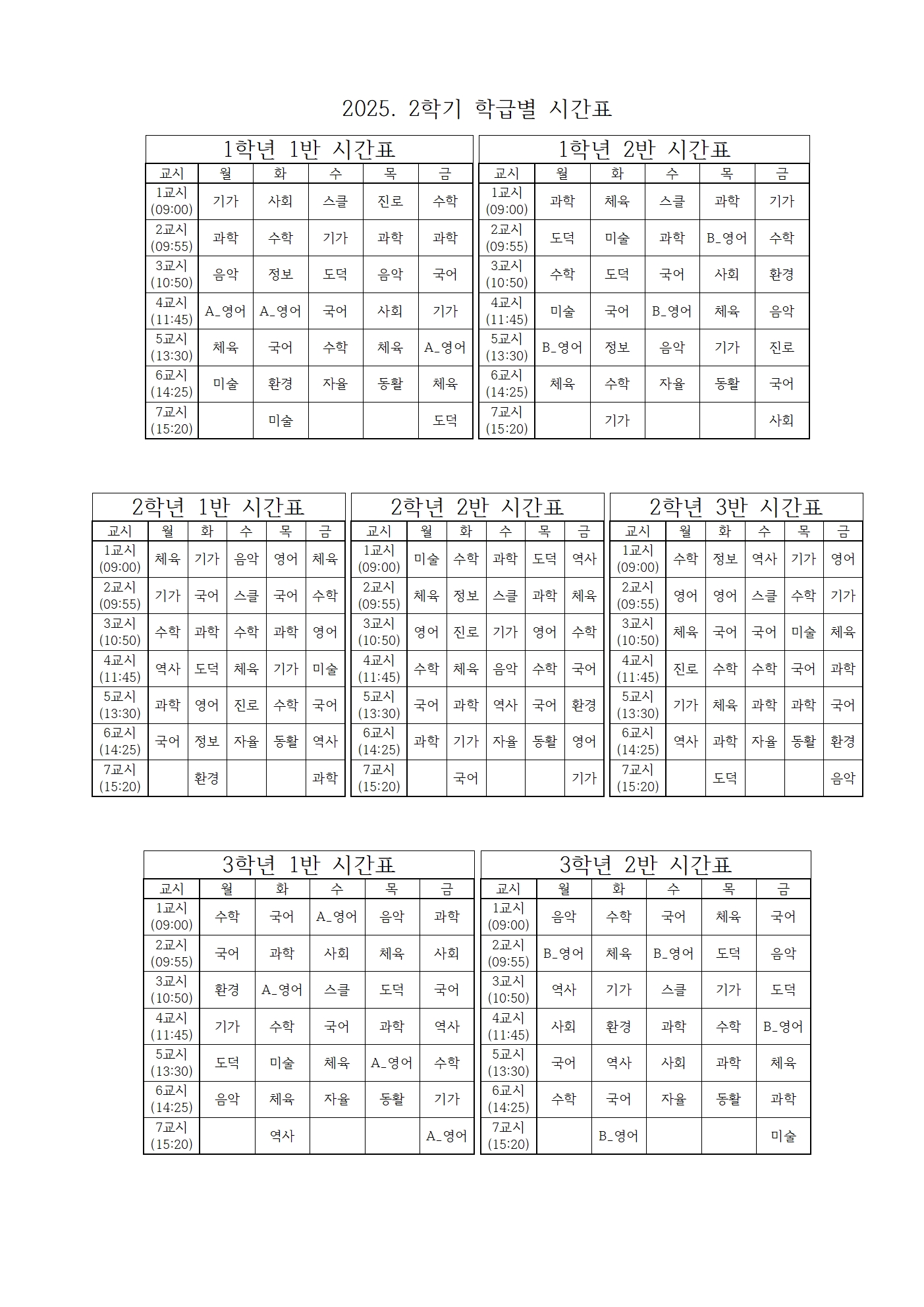 2025학년도 2학기 시간표