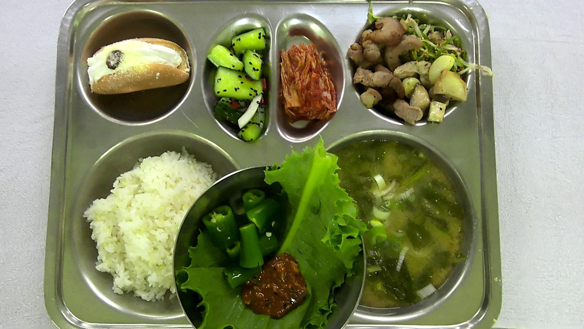 찰현미밥2들깨시락국1(5.6.9)새콤오이양파생채(감성11-중등)(13)한입모듬구이&파채무침(10.13)배추김치2(9)우리밀생크림오믈렛.(1.2.5.6)청상추+고추1(자율)