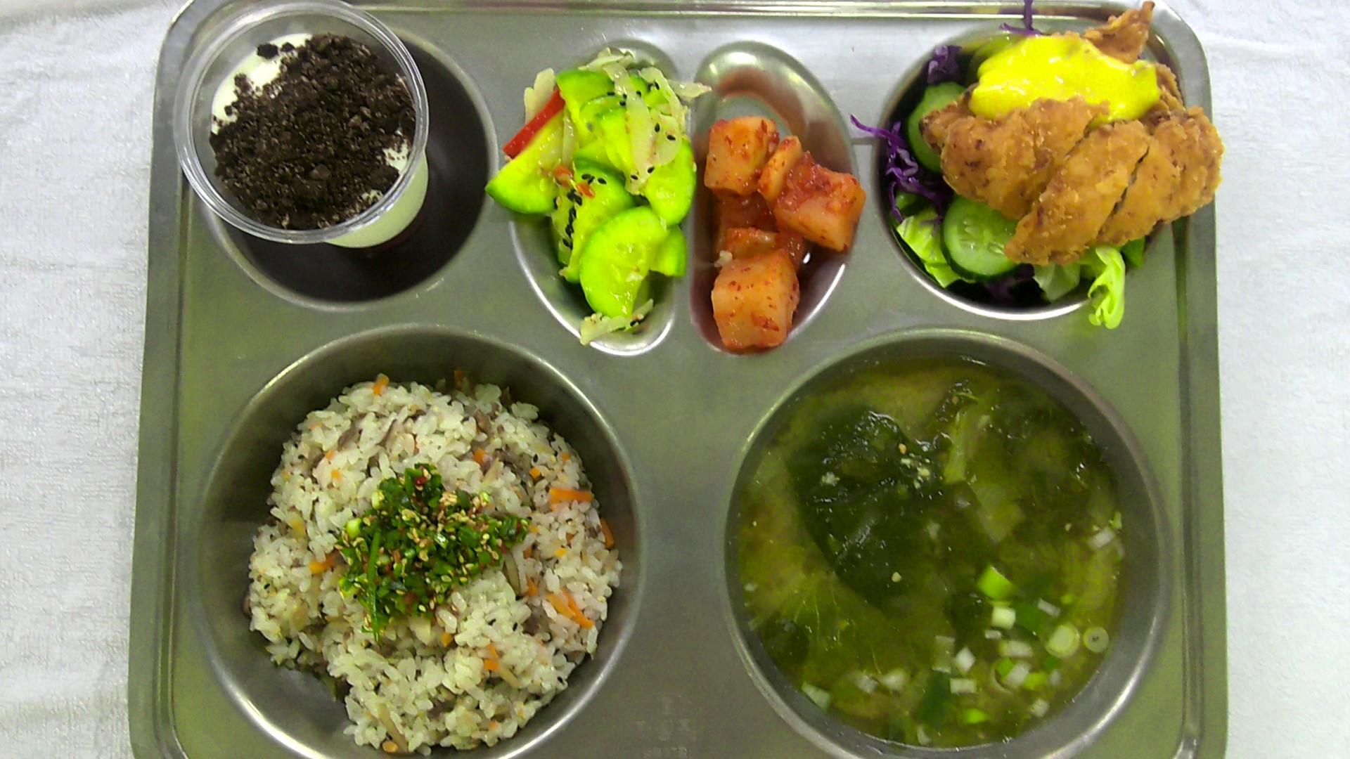 쇠고기우엉밥.(5.6.13.16)단배추들깨국1(5.6.9)애호박볶음(자율)(5.9)케이준치킨텐더 샐러드.(1.2.5.6.13.15.18)깍두기2(9)돼지바요거트2(1.2.5.6.13)