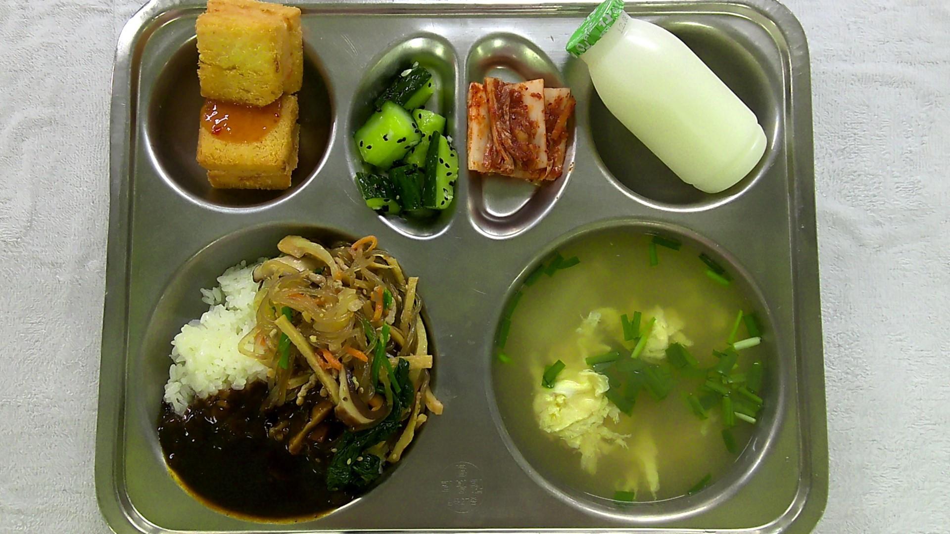 자장잡채밥(잡채밥)1(1.5.6.10.13)부추달걀국1(1.9.13)새콤오이무침2(13)멘보샤&칠리소스.(1.5.6.9.12.13)배추김치2(9)자장소스(잡채밥)1(5.6.10.13.16)요구르트(샤인머스캣)1(2)