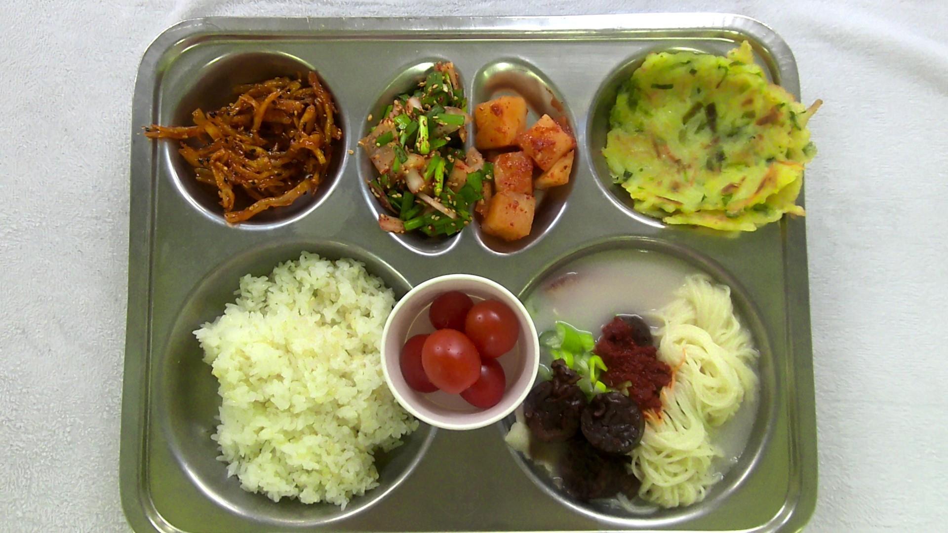 찰현미밥1사골순대국&소면1(2.5.6.10.13.16)부추양파겉절이1(13)진미채무침1(1.5.6.13.17)미나리감자전1(5.6)깍두기2(9)대추방울토마토(적색)1(12)