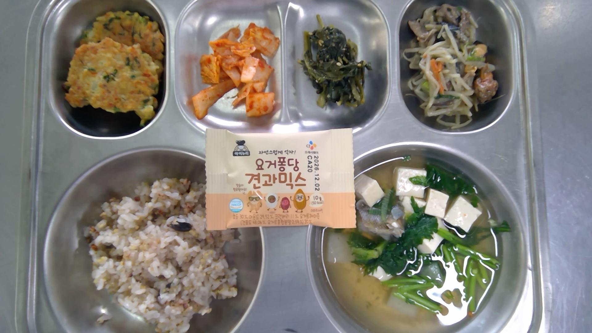 정월대보름오곡밥(초)얼큰한동태탕(5.8.9.18): 염도 0.6%콩나물들깨찜(5.16.18)부지갱이나물볶음(자율)(5.6)동그랑땡전(수제)(1.5.10)배추김치(9)모듬견과(2.4.14.19)* 에너지/단백질/칼슘/철686.42/55.21/355.46/5.31