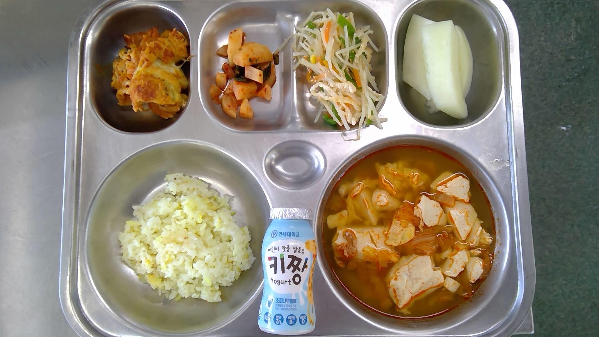 강황쌀밥순두부찌개(1.5.8.9.10.13.18): 염도 0.6%로제찜닭(2.5.6.12.13.15)콩나물유부샐러드(5.6.13)아삭고추된장무침(자율)(1.5.6.13)총각김치(9)골든듀멜론우유(초)(2)* 에너지/단백질/칼슘/철641.8/42.4/242.1/3.6
