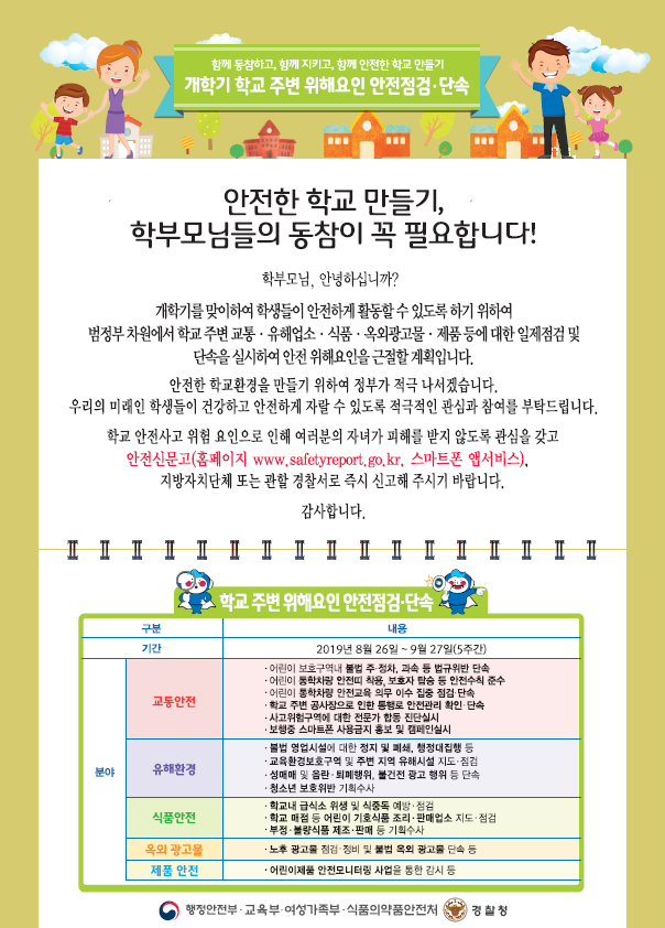 2019. 개학기 학교 주변 안전 점검 및 단속을 알려드립니다.