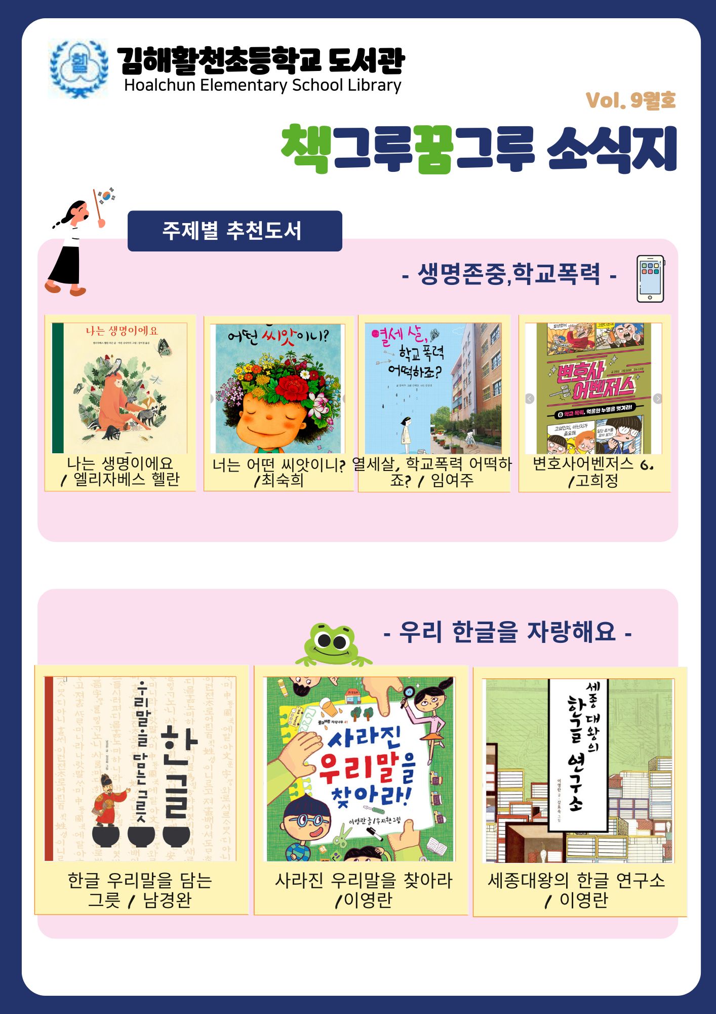 김해활천초등학교 책그루꿈그루 도서관 소식지 (9월호)