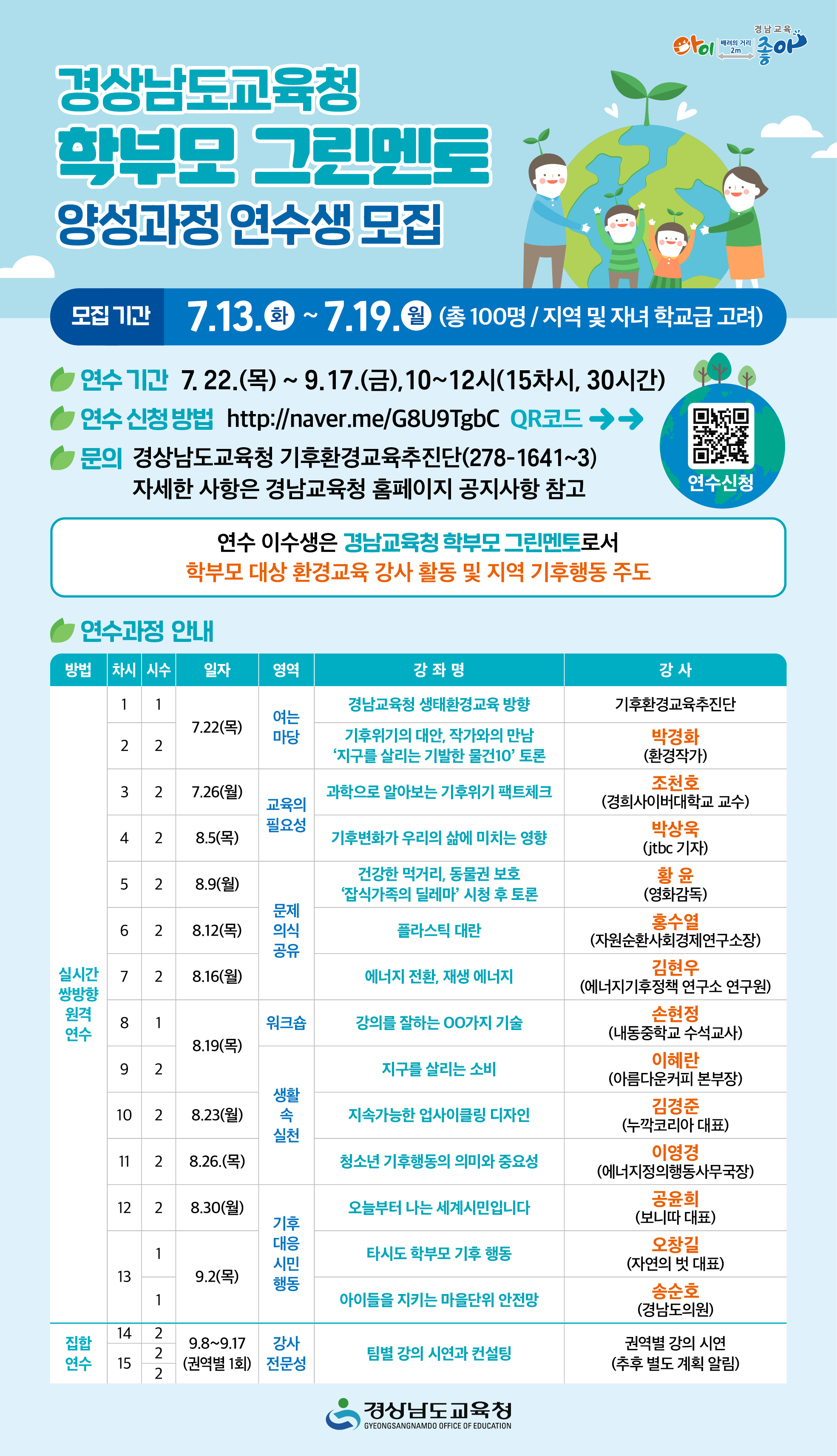 경남교육청 학부모 그린멘토 양성과정 연수생 모집 안내