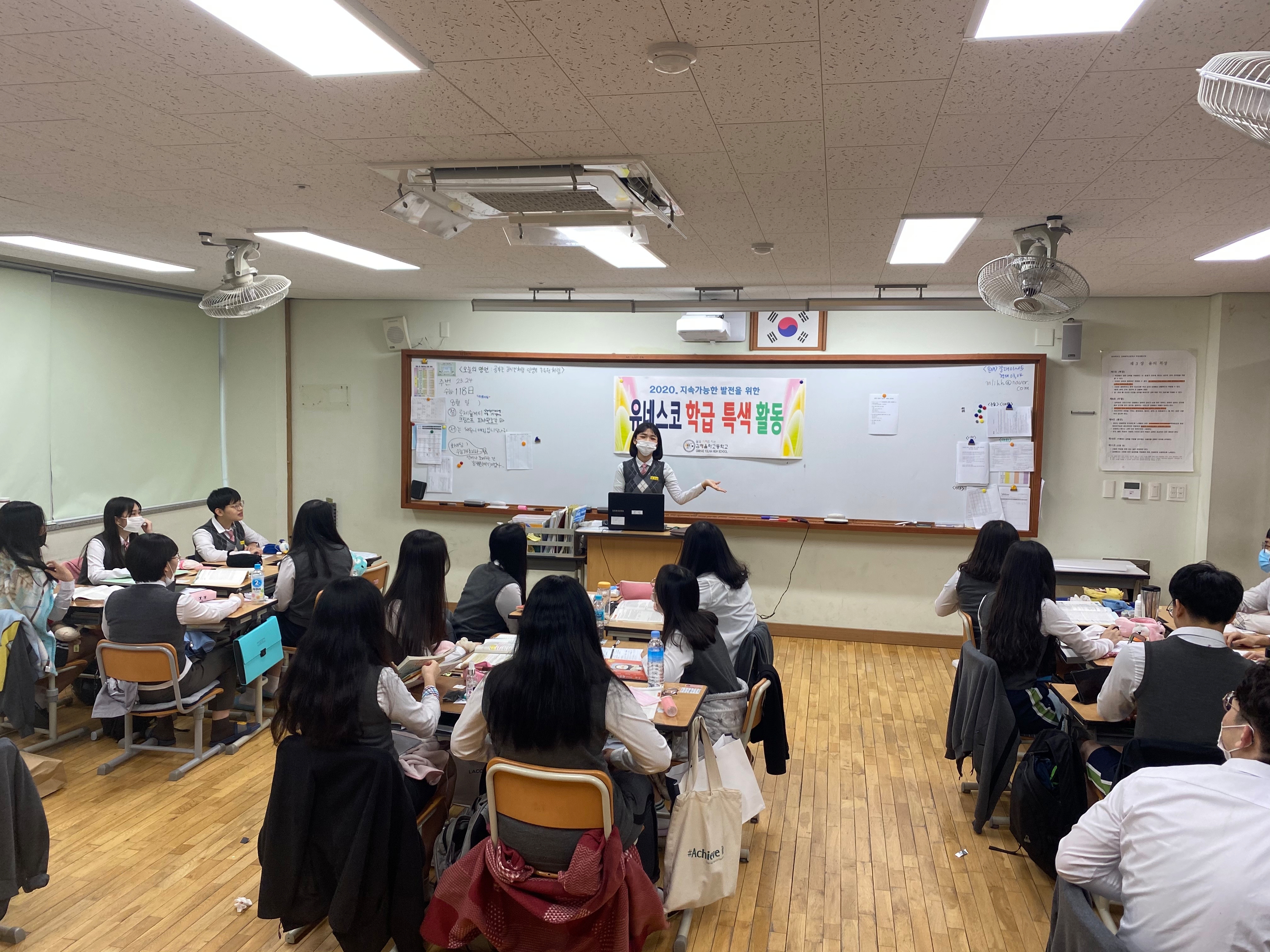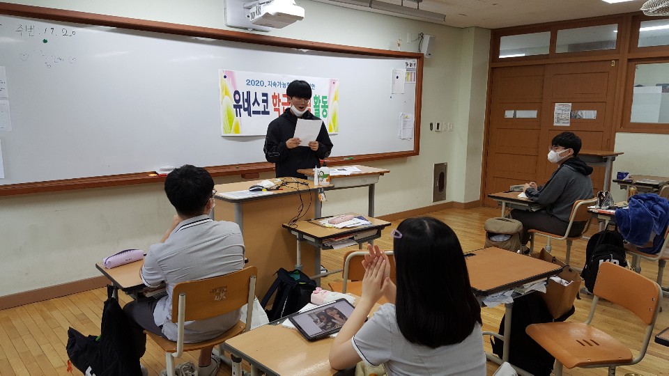 3학년 학급별로 교육, 인권, 평화, 환경, 문화 상대성 등을 주제로 그룹별 토론 및 공개 발표회 실시하였습니다.
