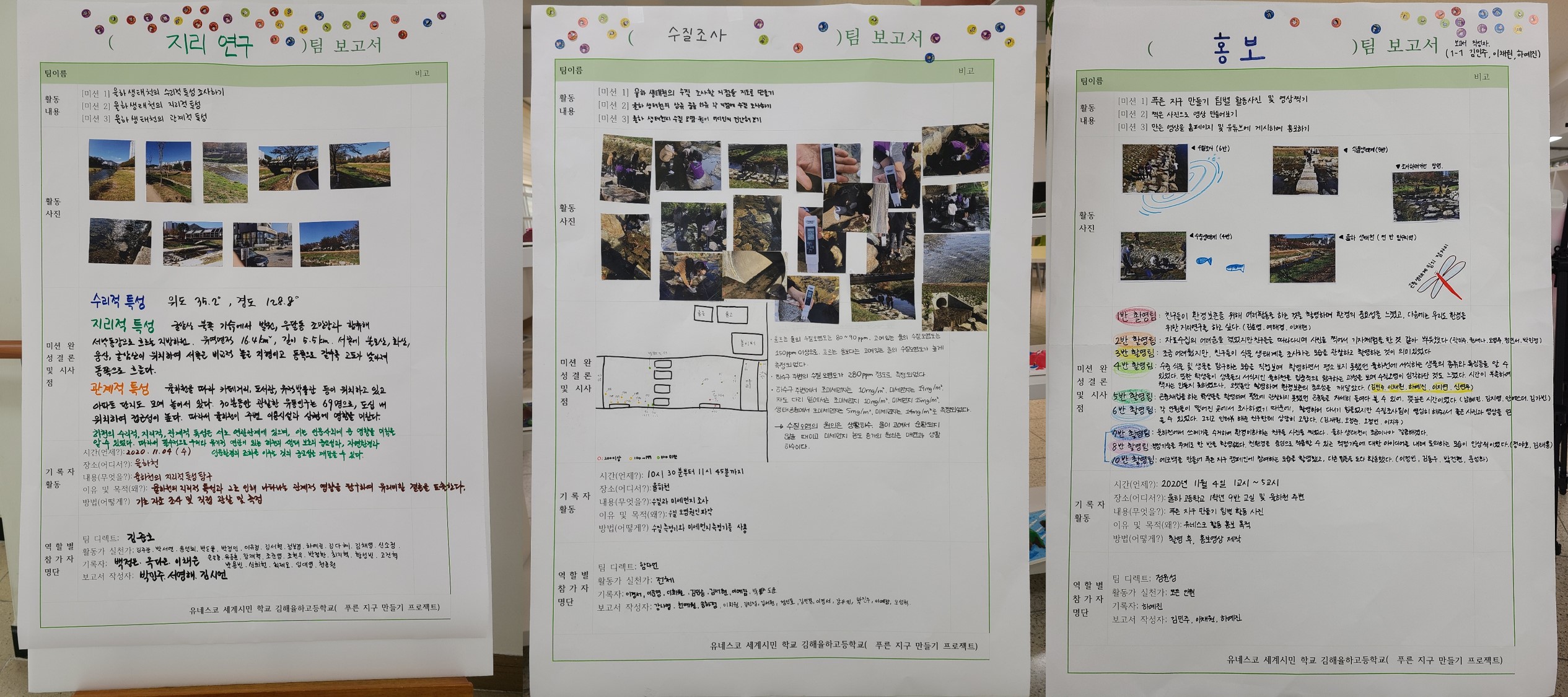 [1학년 유네스코 세계시민학교 학급 특색 활동] 주제 : 나의 재능을 활용한 푸른 지구 만들기 프로젝트 1. 개요 및 목적 가. 유네스코 세계시민학교의 지속가능한 발전교육을 일상 생활에서 실천해 보기 나. 율하생태천 주변의 자연환경과 인문환경을 탐구하고 지속적으로 보존하고 발전시킬 수 있는 대안 찾기 다. 하나뿐인 지구를 보존하고 더 살기 좋은 세상을 만들어가는 경험 쌓기