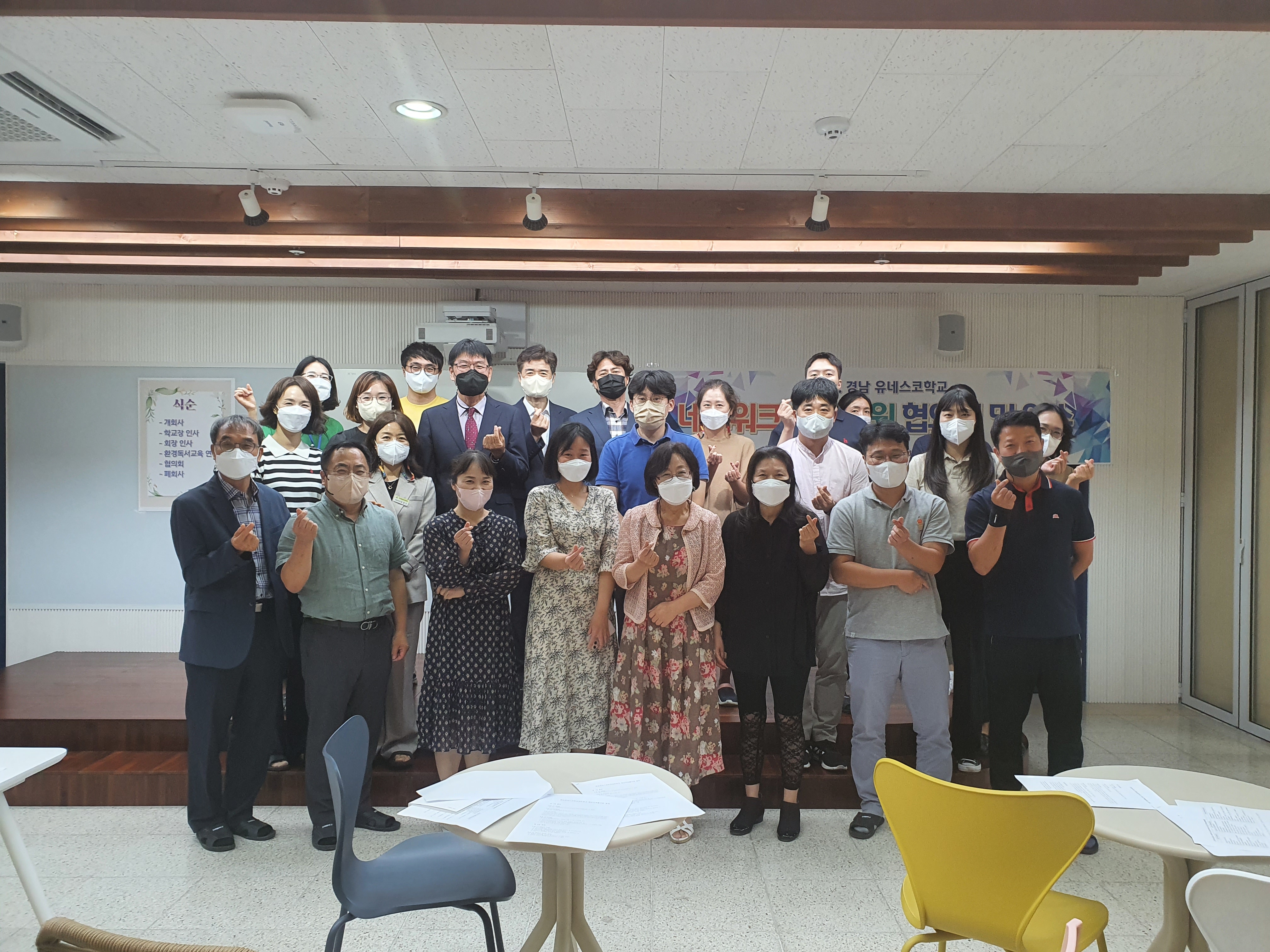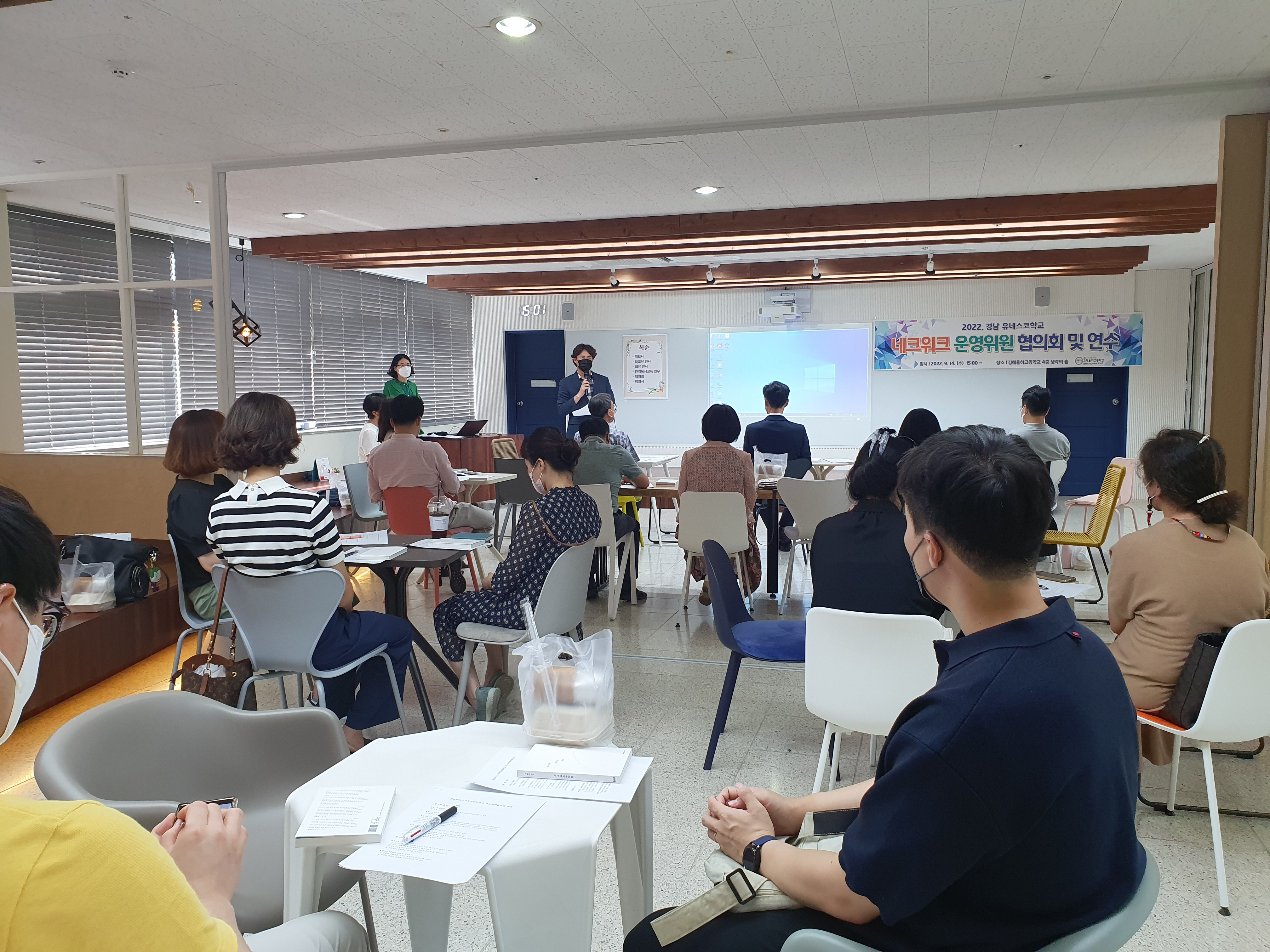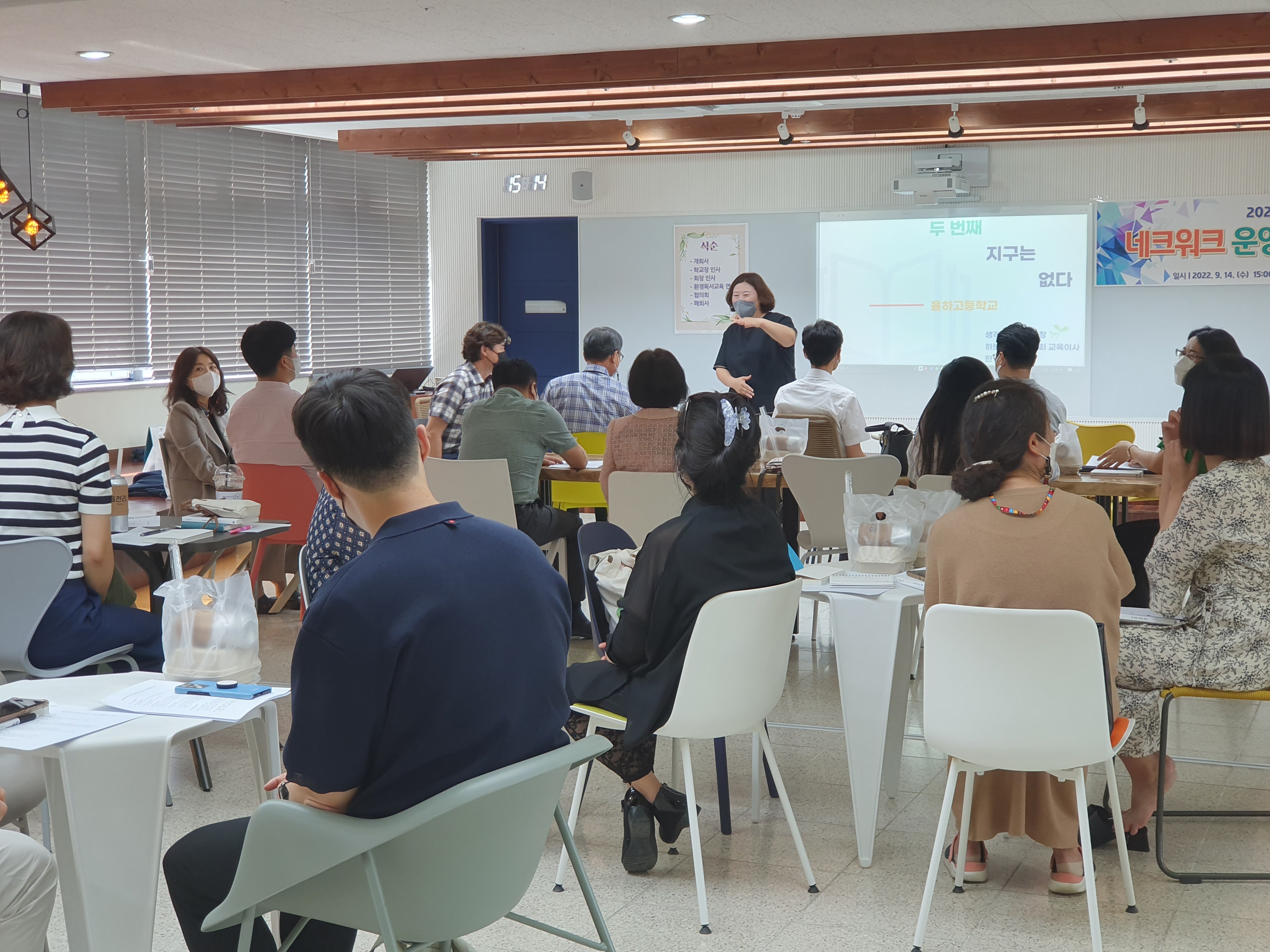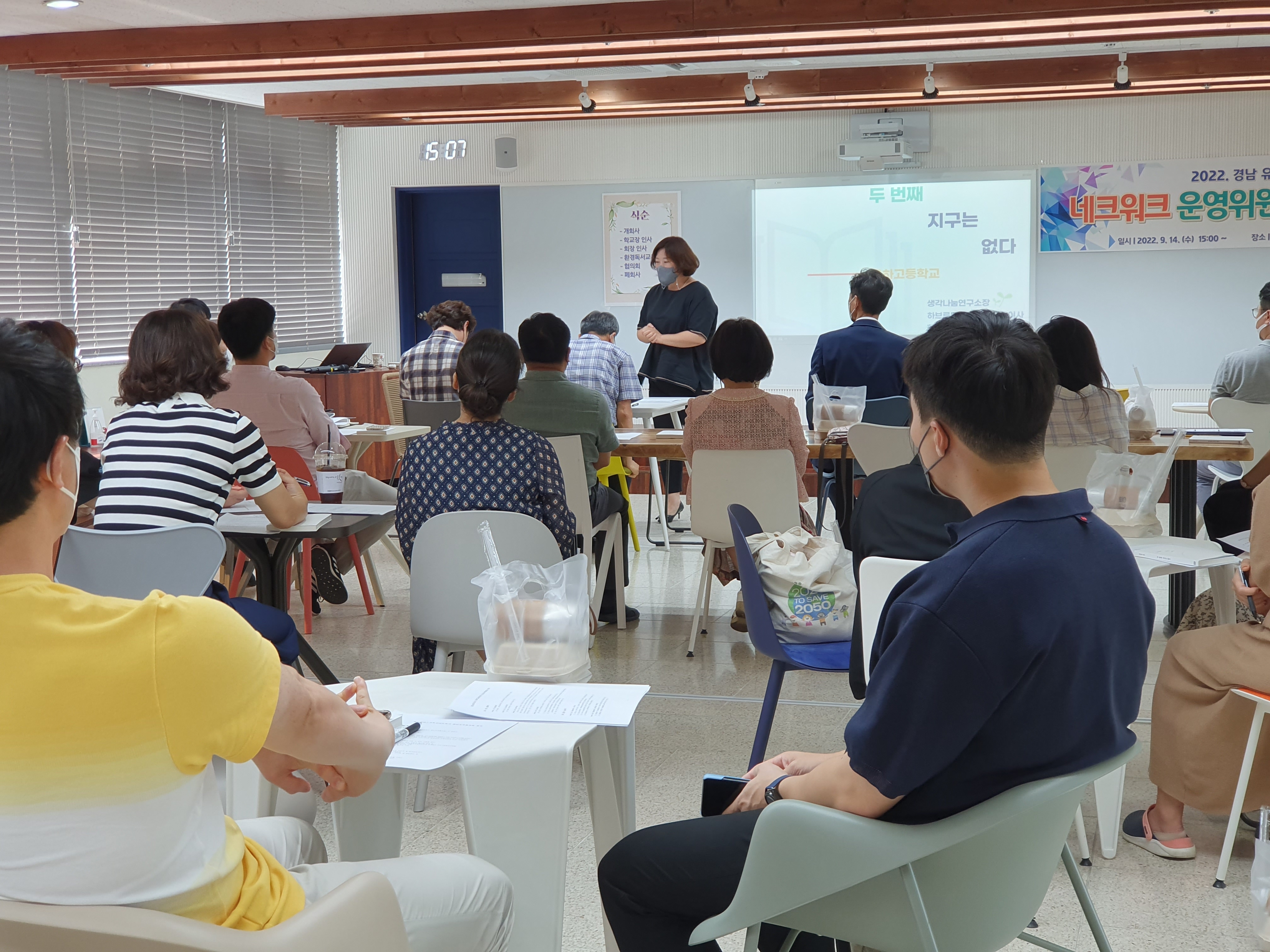 2022년 9월 14일(수) 15시부터 본교에서 2022학년도 경남유네스코학교 네트워크 연수 및 협의회가 실시되었습니다. 이 자리에는 경남유네스코학교 36개 담당자와 운영위원들이 참석하여 지속가능발전교육을 위한 환경독서교육 연수와 협의회를 통해 기후위기를 극복할 수 있는 방안을 모색하고 원활한 유네스코학교 운영 방안을 협의하는 시간을 가졌습니다.