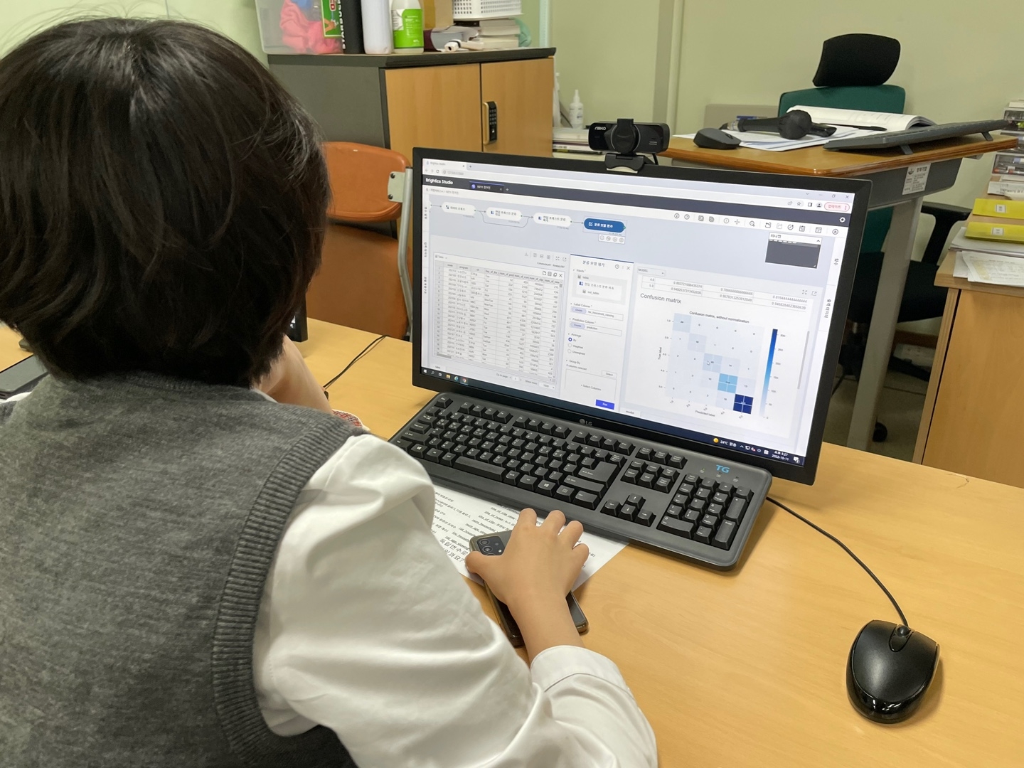 본교는 2학기에 삼성 주니어 소프트웨어 아카데미 지원을 받아 방과후로 '인공지능 데이터 분석반'을 운영하고 있습니다. 인공지능의 학습 원리인 지도학습과 비지도학습을 인공지능 데이터 분석 소프트웨어를 활용해 이해하고, 데이터의 수집과 시각화 활동을 통해 데이터를 바라보는 시야를 기르고 있습니다. 이론 수업이 완료되면 팀별 데이터 분석 프로젝트가 진행될 예정입니다.