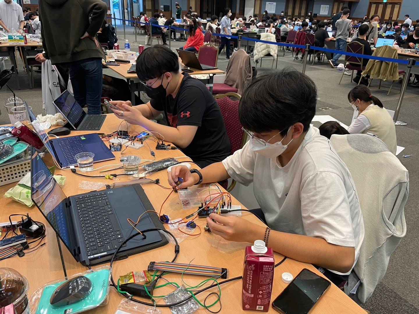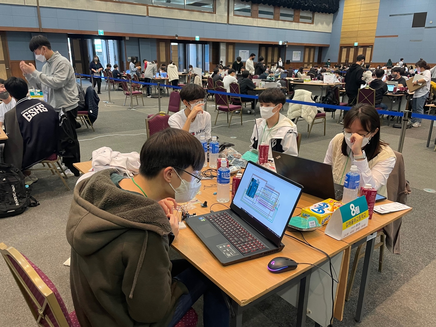 제5회 해커톤 한마당 행사에 열정 가득한 본교 학생 12명이 참가하였습니다. 고등부 21개팀의 학생들이 무박 2일의 짧은 기간 동안 소주제 선정을 위한 아이디어 회의, 우드락을 이용한 구조물 설계, 동작 설계를 위한 프로그래밍, 영상 제작 등의 과정에서 협업의 중요성을 몸소 느끼고, 협력적 컴퓨팅 사고력을 신장할 수 있는 소중한 경험을 가졌습니다. 특히 It is IT팀은 고등부 21개팀의 상호평가 결과 1위를 차지하였습니다. 축하합니다.