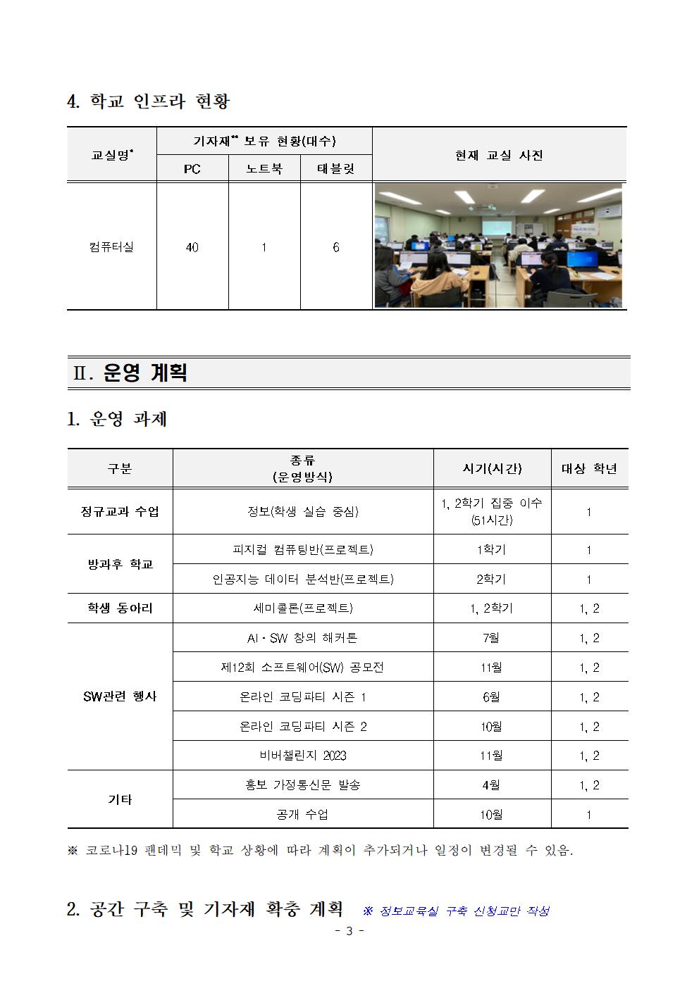 학교 교육과정 변화로 인해 수정되는 계획서 내용은 갱신하여 첨부하도록 하겠습니다.