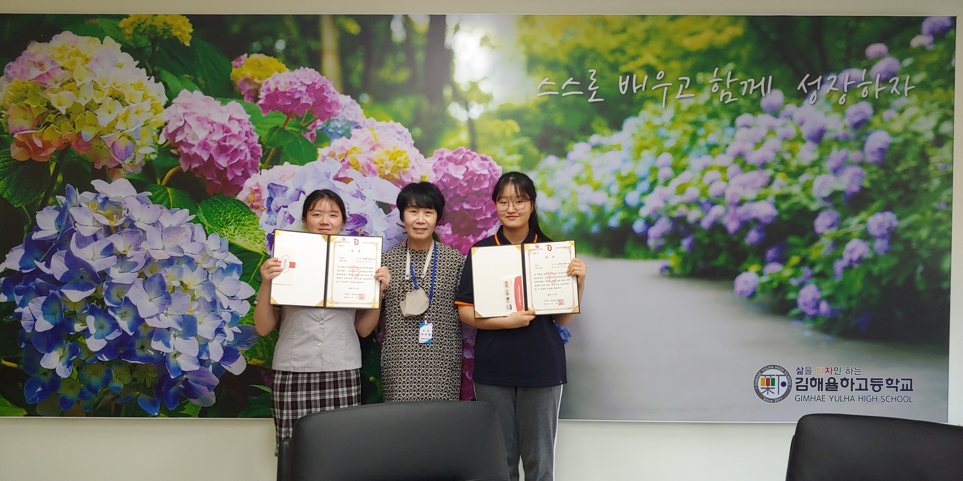경남도민일보사와 한국작가회의 경남지회가 공동주최하고 경상남도교육청과 범한퓨얼셀이 후원한 제19회 경남 청소년 문학대상에서 1학년 김*주(고등부 운문 버금상 및 문화상품권 5만원) 학생과 3학년 김*영(고등부 산문 북돋움상 및 문화상품권 1만원) 학생이 입상하였습니다.