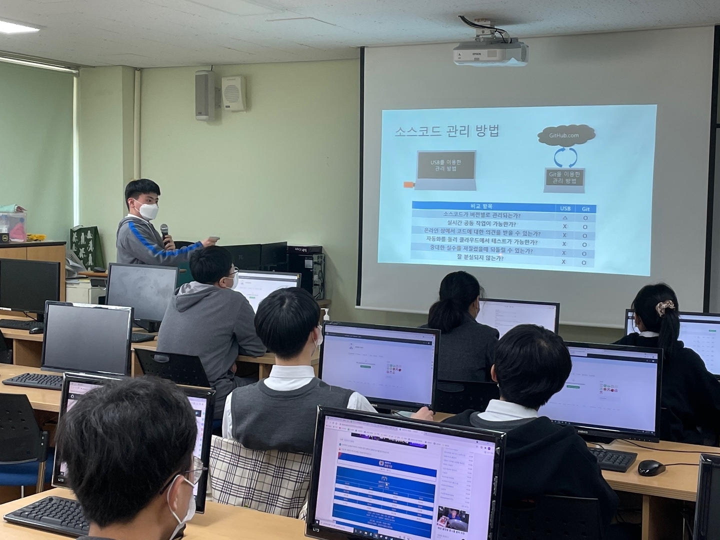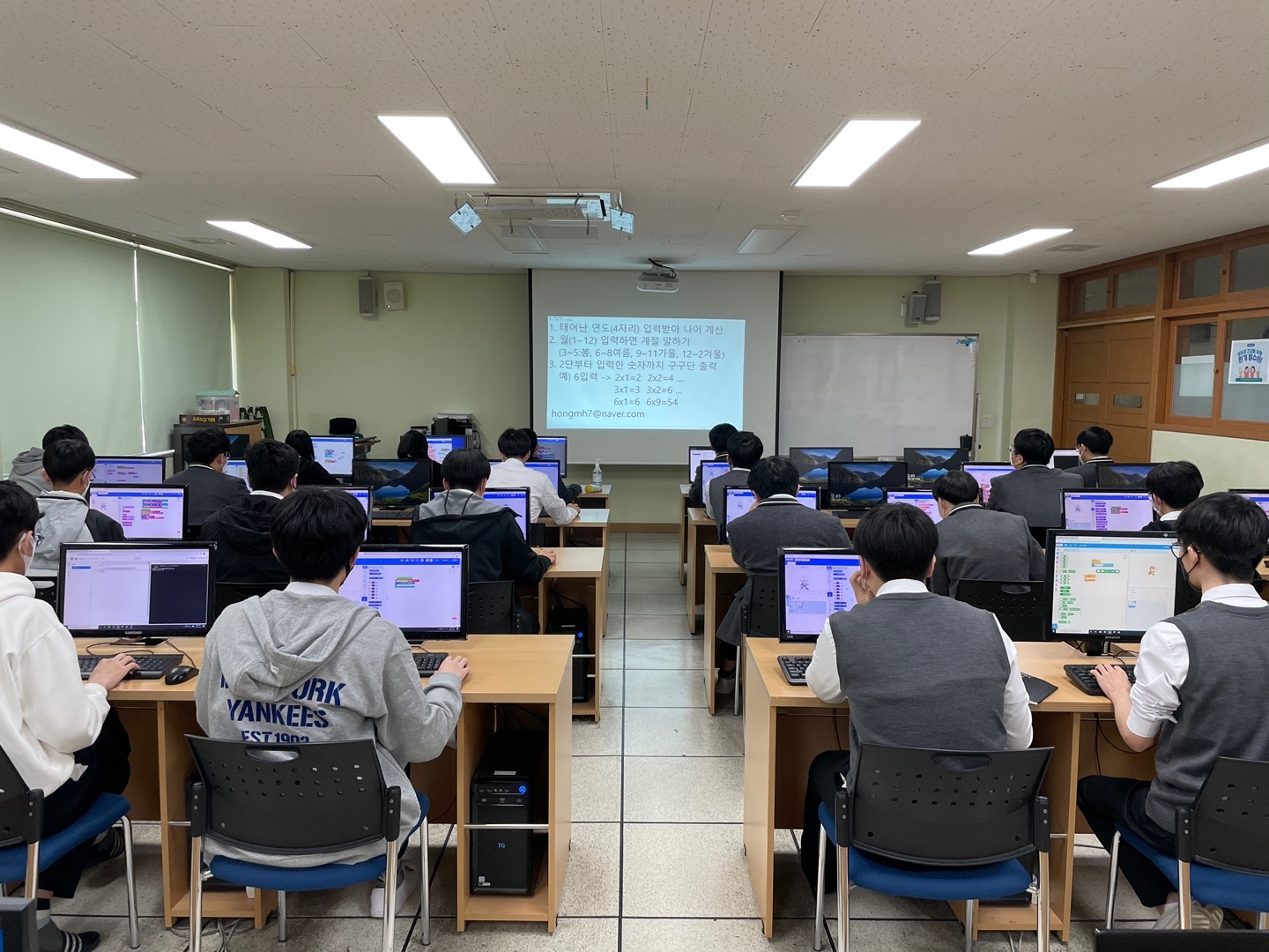 2021학년도 소프트웨어 관련 활동 동아리인 'MICRO.YUL' 이 구성되었습니다. 많은 학생들이 동아리 지원을 했고, 컴퓨터실 수용 인원 효율적인 운영을 고려하여 부득이 학생들의 동의를 구해 프로그래밍 실력 검증을 통해 31명으로 구성하였습니다. (1학년 16명, 2학년 15명) 학생들간 멘토 멘티 프로그램 운영을 통해 서로 정보를 공유하고 문제해결 프로그래밍, 프로그래밍 언어 학습, 로봇 프로그래밍 등의 활동을 진행하였습니다. 또한 교내 체험 부스를 운영하여 CSS 학습, EV3를 이용한 기타연주 프로젝트 등을 수행하였습니다. 소프트웨어에 관심있고 진로를 희망하는 학생들이 꿈과 끼를 찾을 수 있도록 조력하겠습니다. :)