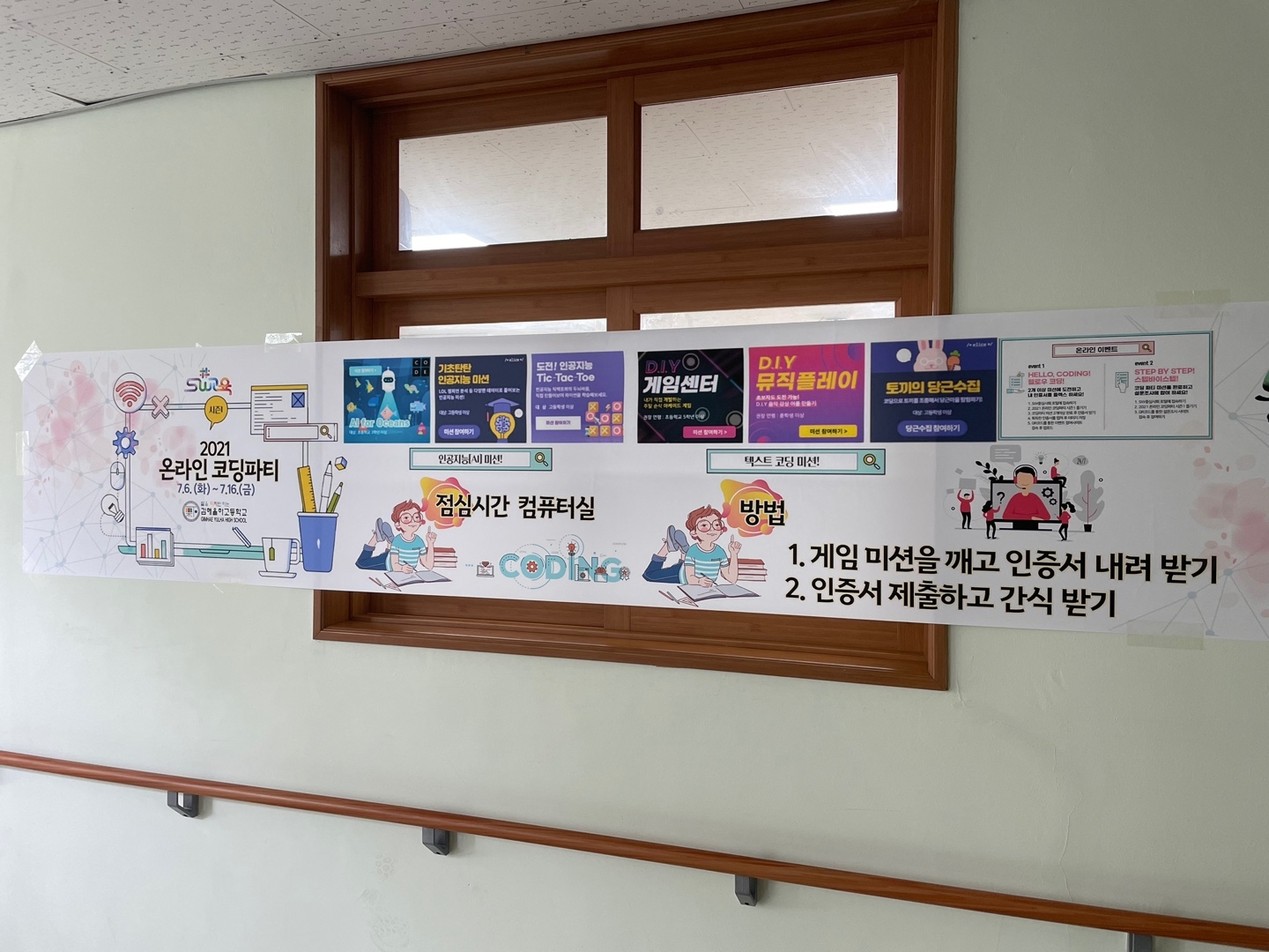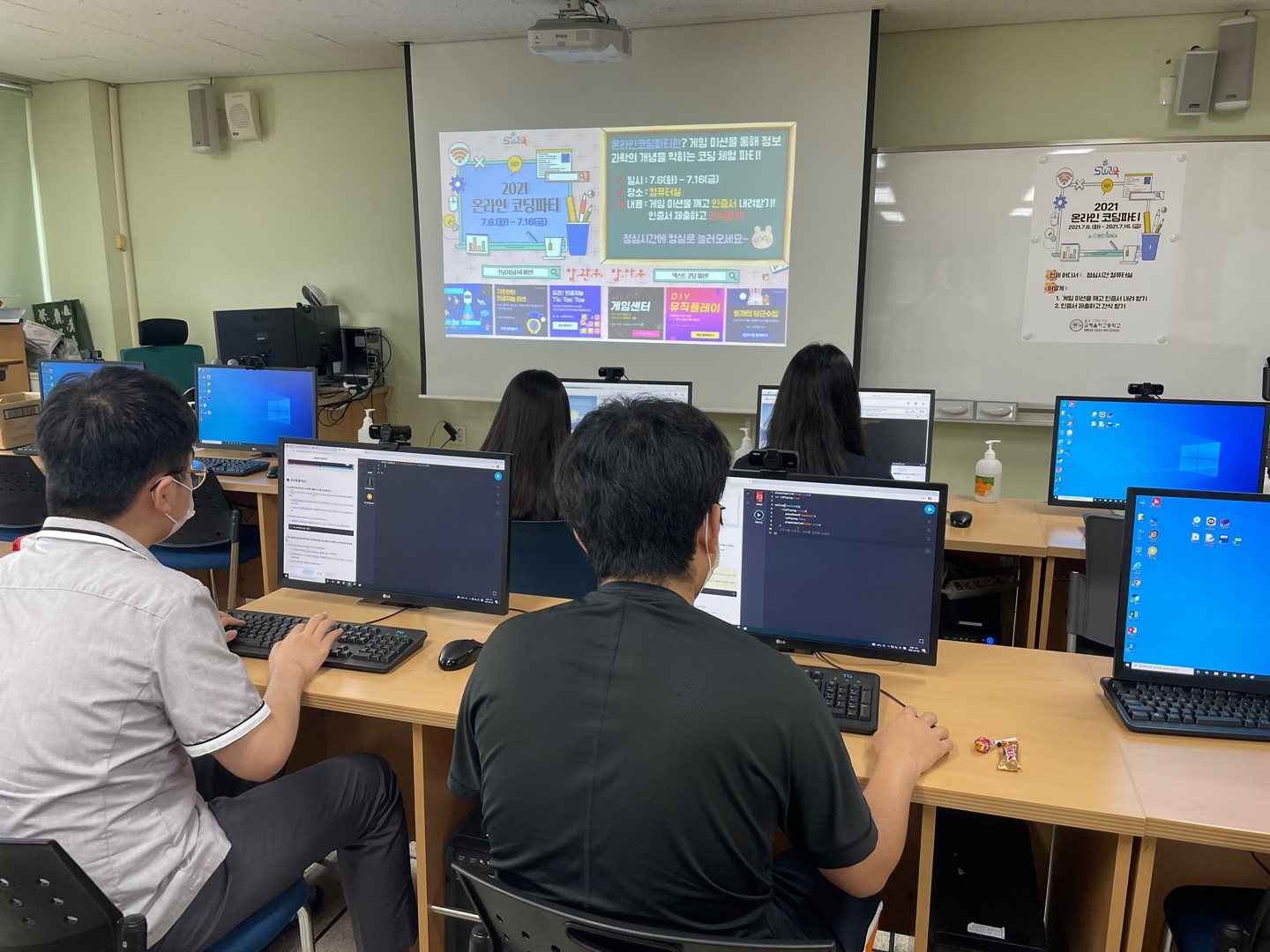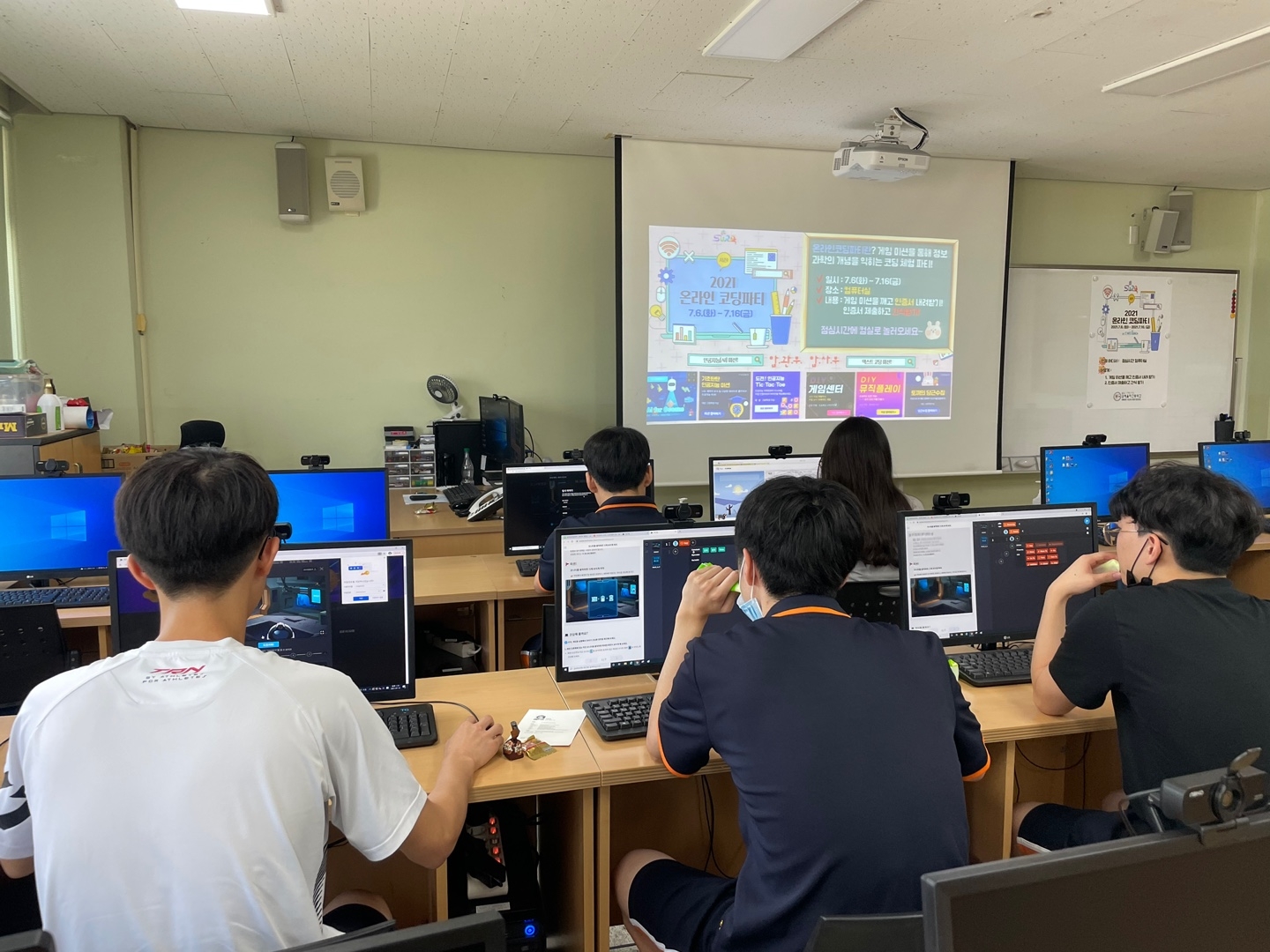 2021. 7. 6.(화) ~ 16.(금) 기간 동안 컴퓨터실에서 온라인 코딩파티 시즌1 행사를 실시하였습니다.