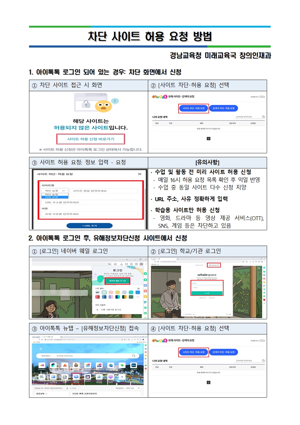 스마트 단말기 차단 사이트 허용 요청 방법 안내