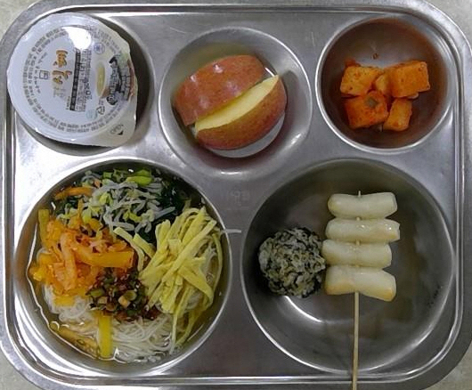 김가루주먹밥5 잔치국수1.5.6.8.9.18 우리쌀떡꼬치구이&꿀5.6.12.13 각두기9 사과 우유2 유기농식혜