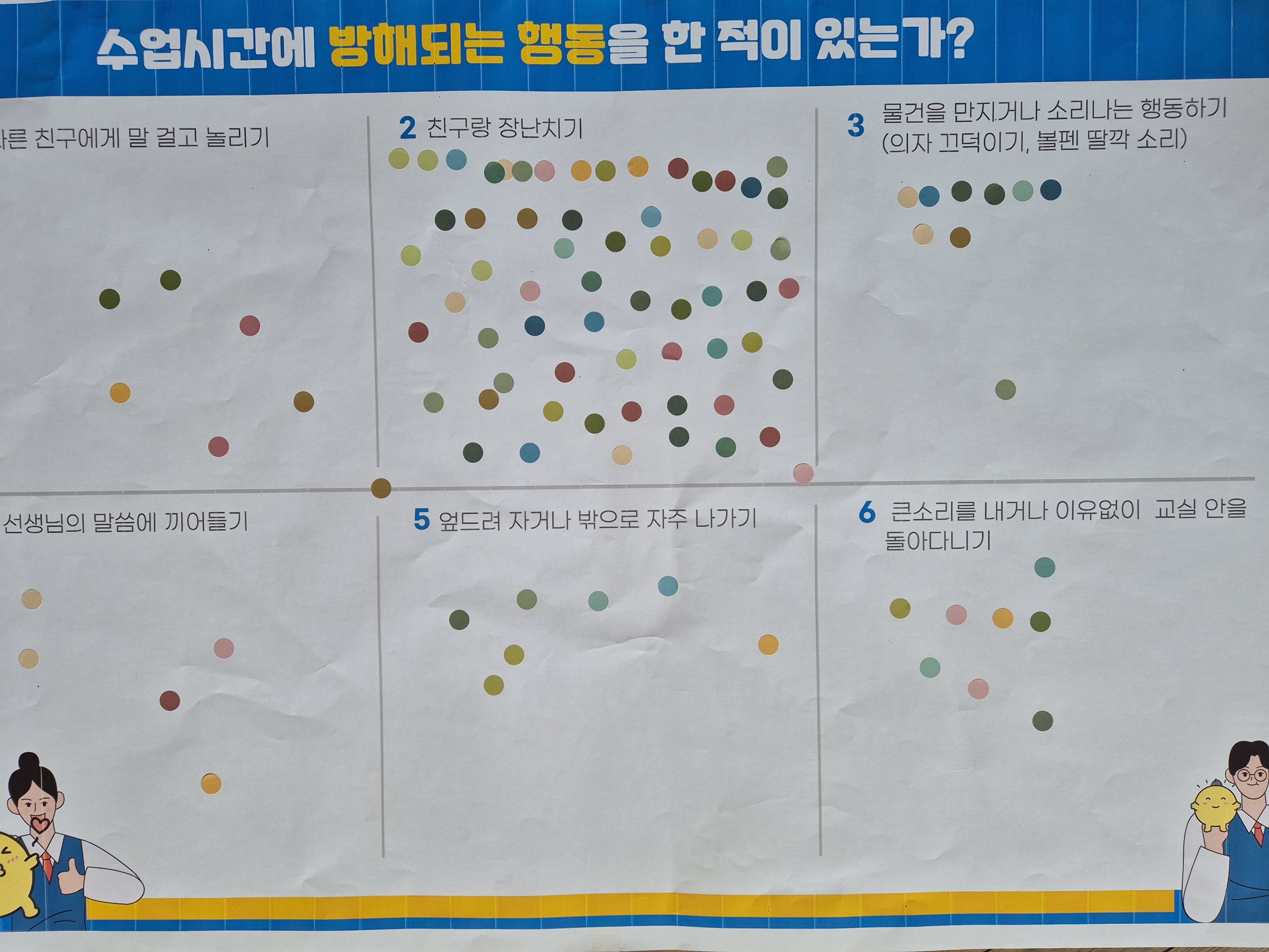 내용: 수업방해 행동 해당 란에 스티커 붙이기, 예방 선서 외치기, 캠페인용 볼펜 선물 증정