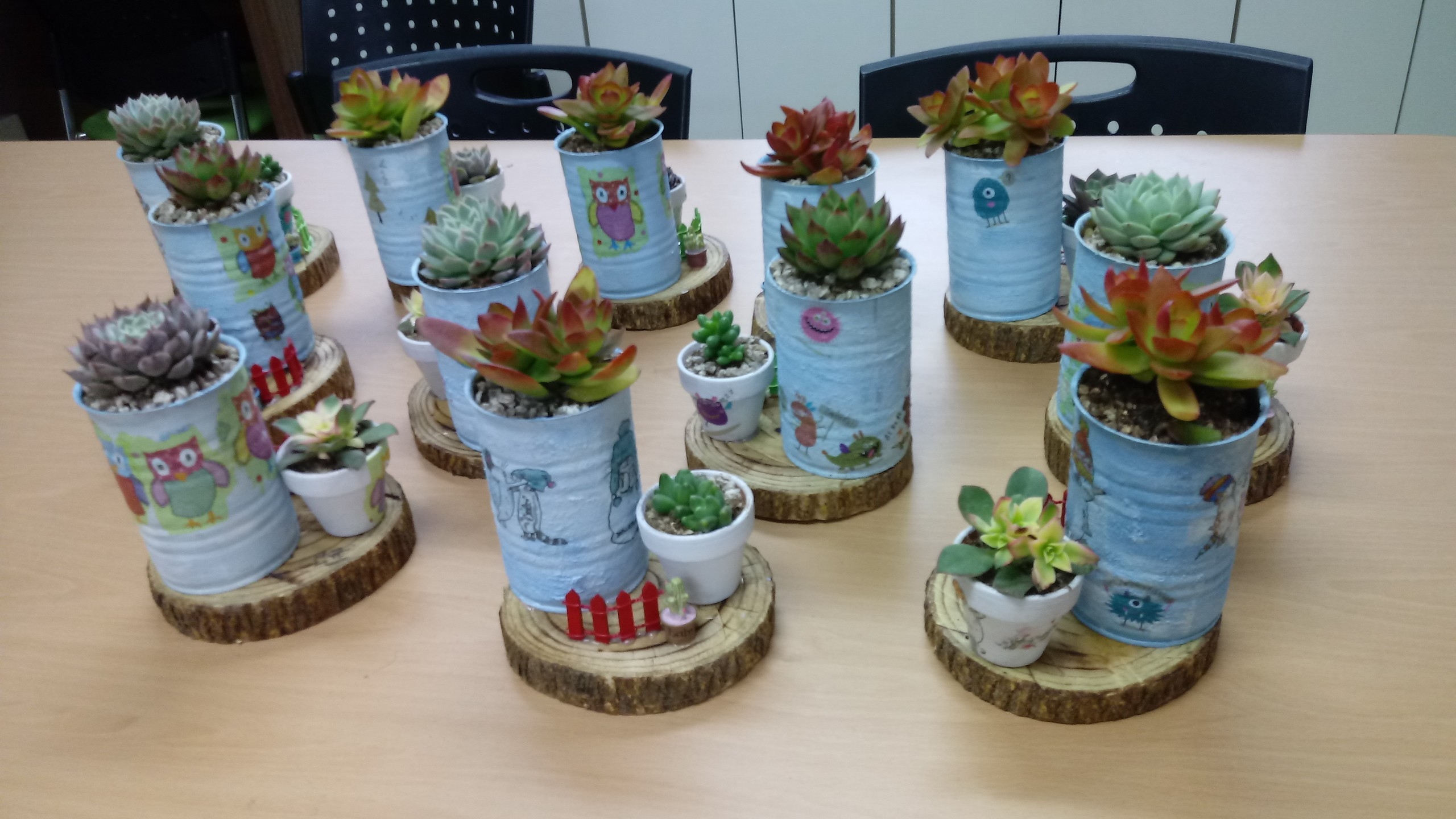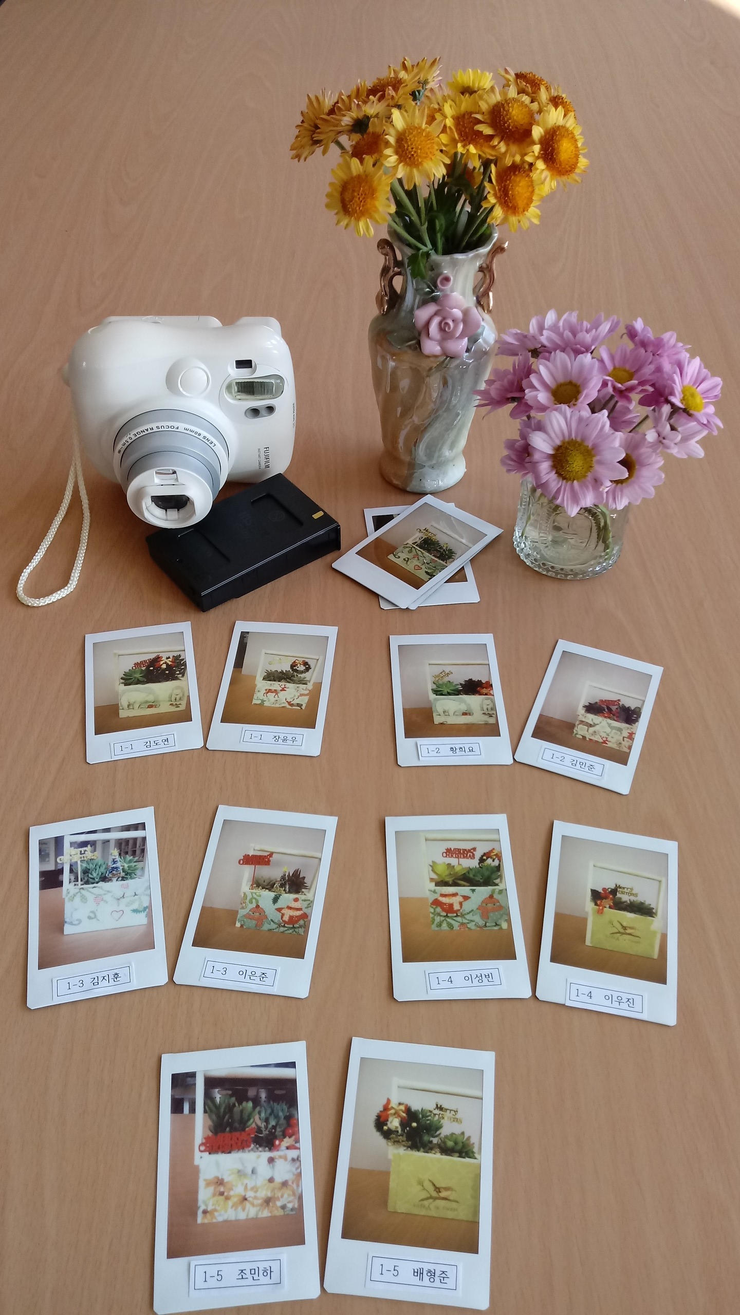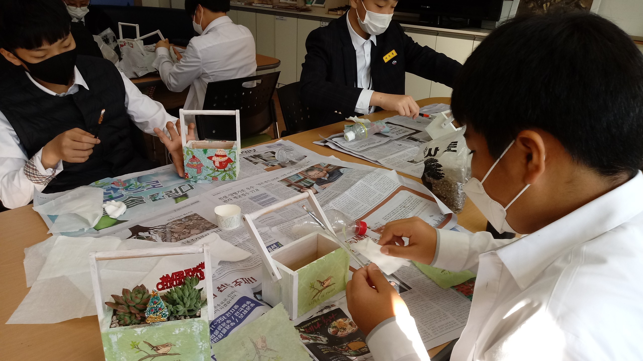 1학년 ~2학년 학생들이 냅킨공에를 활용하여 화분 용기를 꾸미고