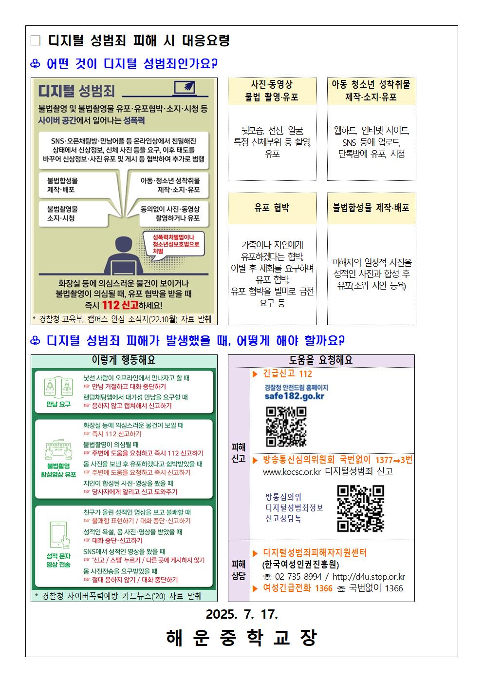2025. 디지털 성범죄 대응 및 예방 안내문