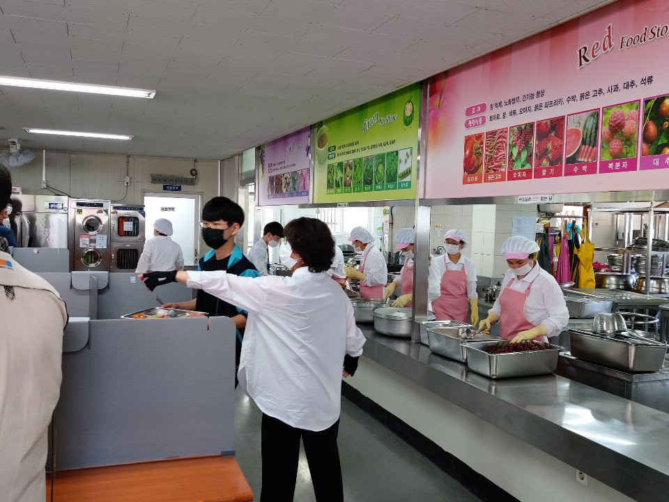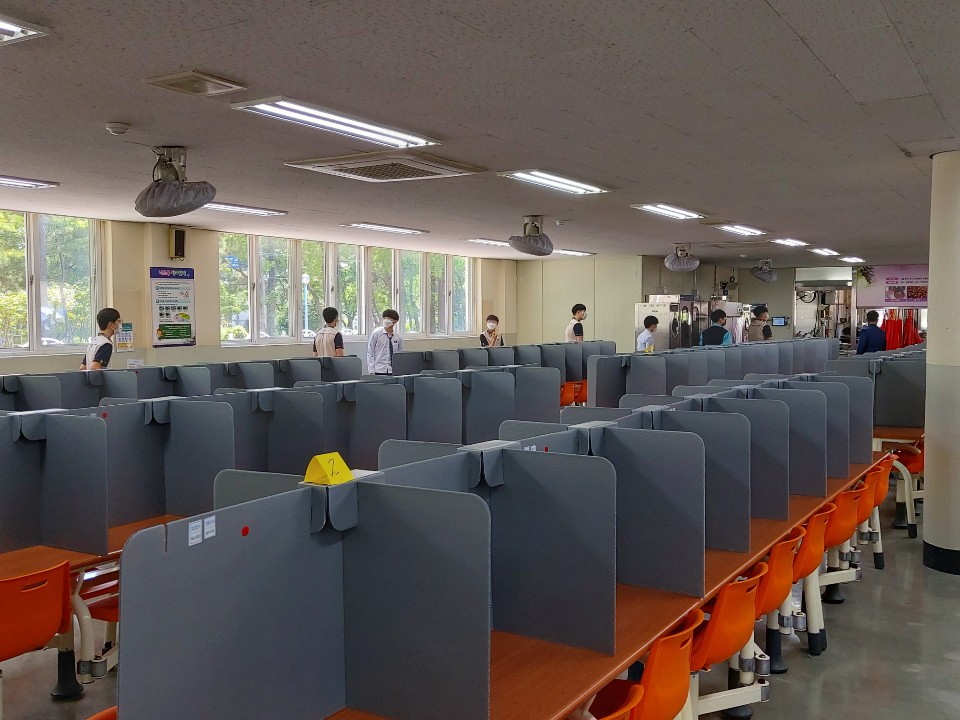 사진은 수업대기, 수업 중, 그리고 급식을 실시하고 있는 모습입니다.