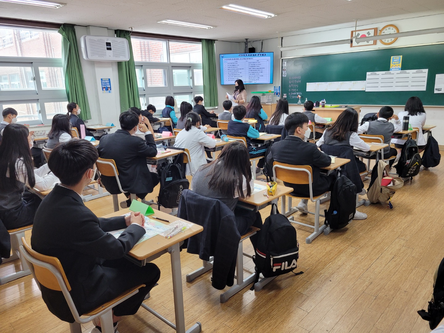 자유학년제 진로탐색활동 진로캠프 실시 - 코로나19 방역수칙을 준수하여 진행하였습니다. 1. 일시 : 2021. 4. 16.(금) 1~6교시 2. 장소 : 1학년 교실 3. 대상 : 1학년 학생 전체 4. 프로그램명 : 오픈퓨처2050 교시 | 주제 | 교육내용 | 1 | 오리엔테이션/ 나의 역량 발견 | 오리엔테이션 mbti 검사로 알아보는 나의 성격 유형 | 2 | 변화하는 미래 | 4차 산업 혁명 시대의 이해 미래 유망 직업 탐색 변화하는 현재의 직업과 융합 직업의 이해 | 3 | 창직 아이디어 발상 | 미래의 사회는 어떤 모습일까? 창직의 원리 이해 신 직업 아이디어 창출 | 4 | 신 직업 발표 | 아이디어 구체화 및 포트폴리오 작성 각 팀의 신 직업 발표 및 활동 수료 | 5 | 미래 인재역량 | 신 직업인이 되기 위환 적성 및 능력 분석 신 직업인이 되기 위한 가치 내재화 | 6 | 신직업 발표 및 My Dream 비전 선포 | 포트폴리오 발표 비전 선포 및 수료식 진행 |