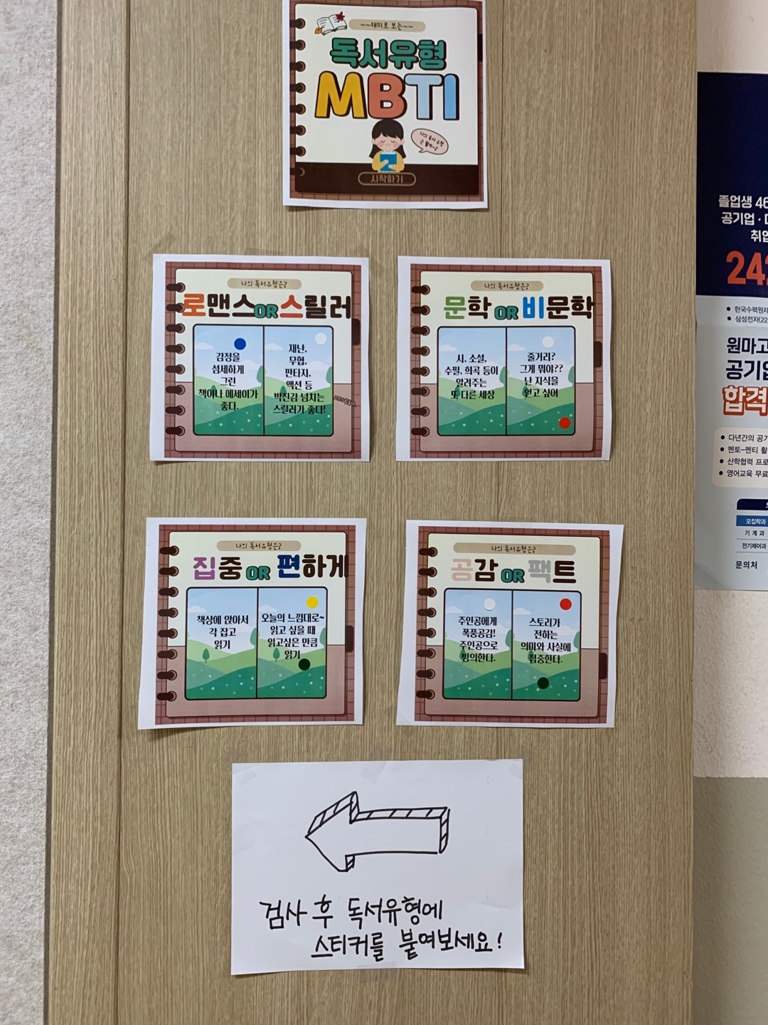 (독서mbti 검사 전시, 삼행시 짓기, 도서실 퀴즈 풀기, 서평쓰기, 책 전달 편지쓰기, 연체자 해지 등등등)