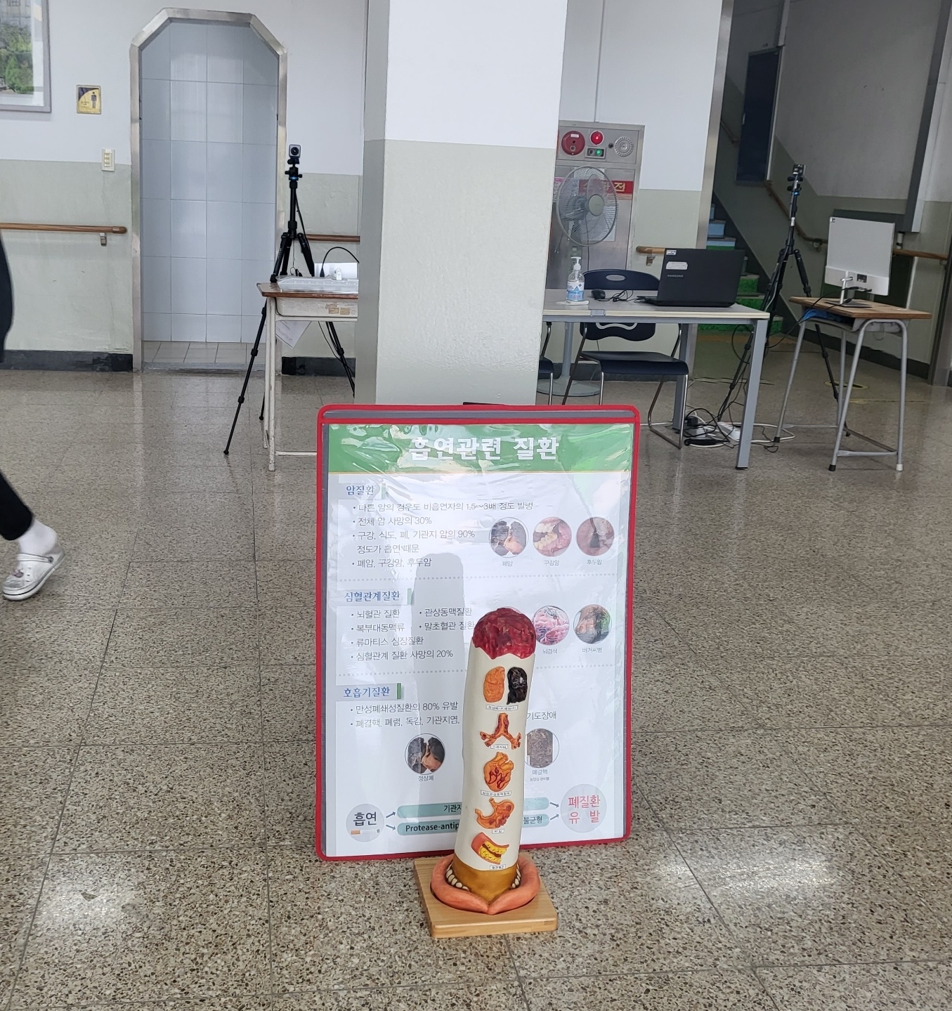 2022.9.26.(월)~9.28.(수) 흡연예방주간을 맞이하여 흡연예방 전시회, 외부강사 초청 흡연예방교육, 흡연예방 '사행시 짓기' 행사를 진행하였습니다. 또한 전교생 대상으로 흡연예방홍보물품(금연L자홀더, 흡연예방3색볼펜, 금연반창고)을 배부하였습니다.