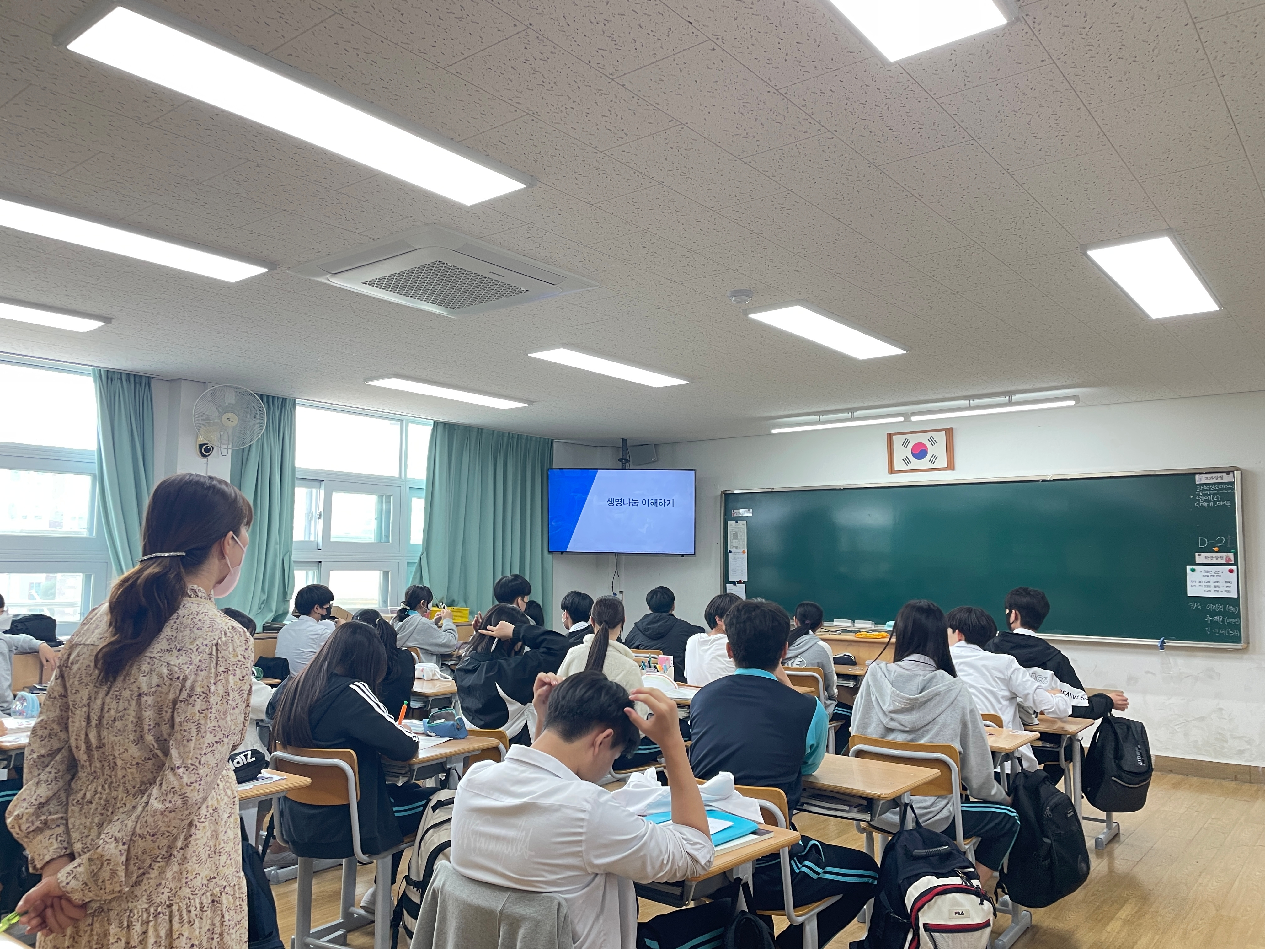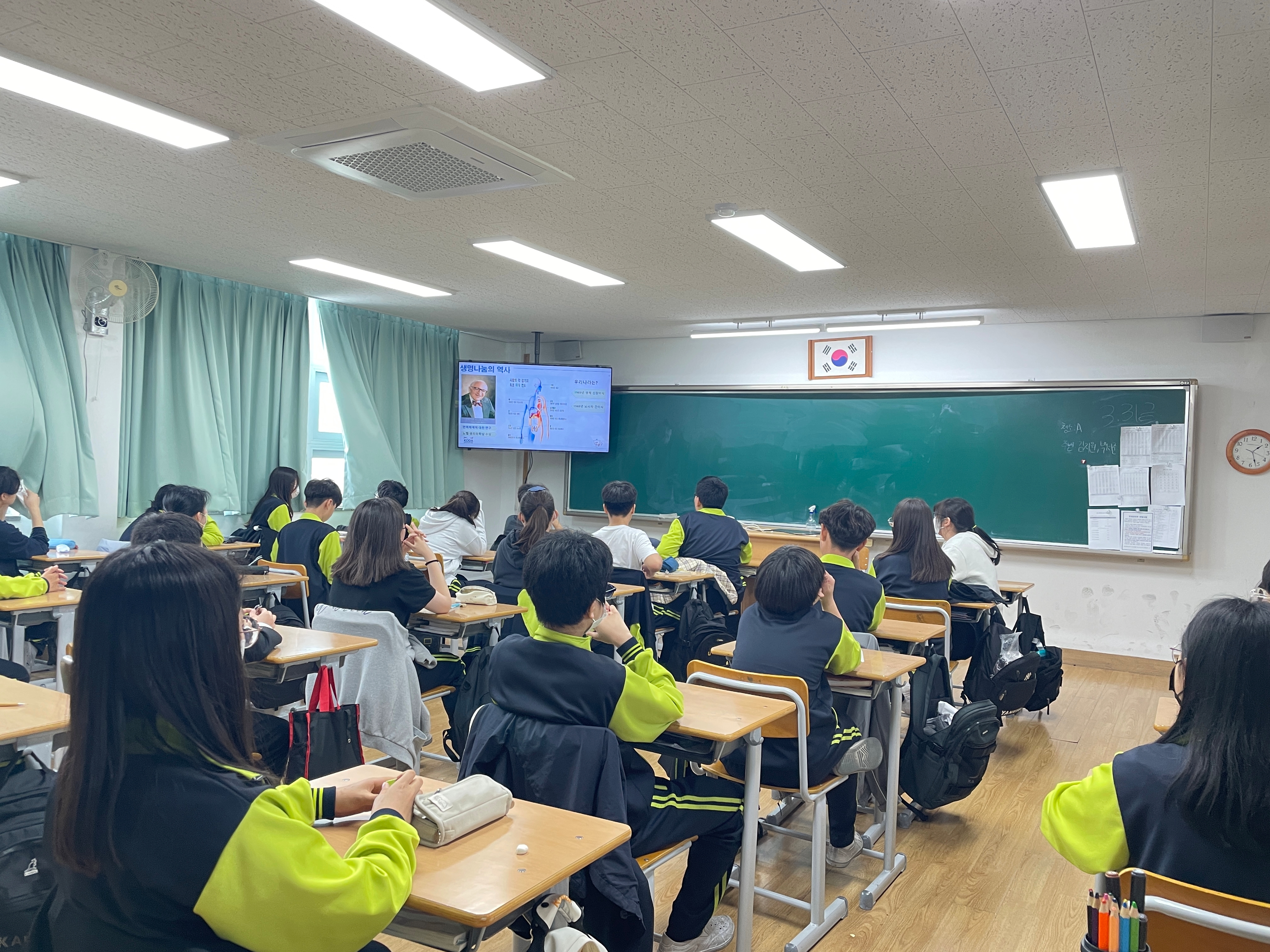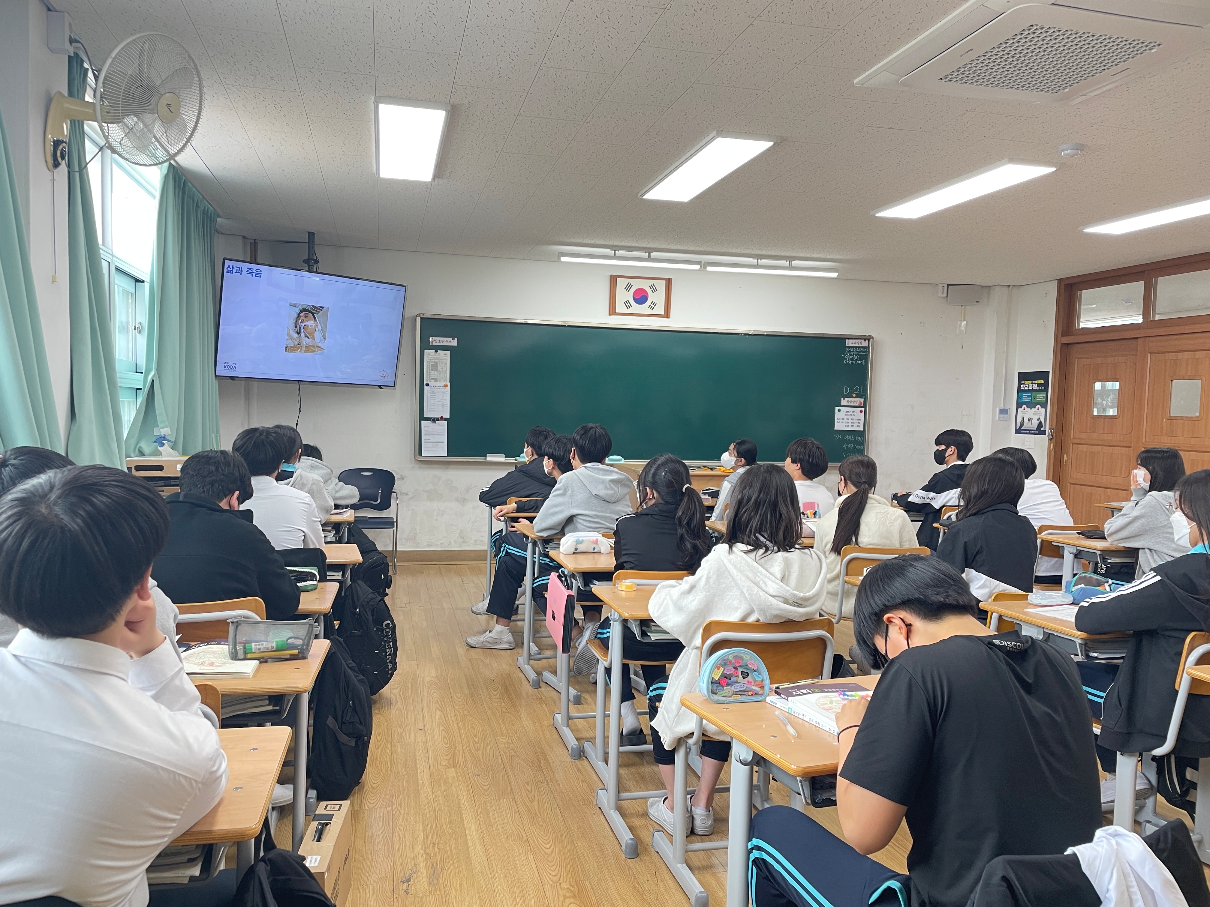 2023.4.4.(화) 7교시 전교생에게 각반교실에서 생명존중 및 생명나눔 교육 강의를 방송으로 송출하여 교육하였습니다.