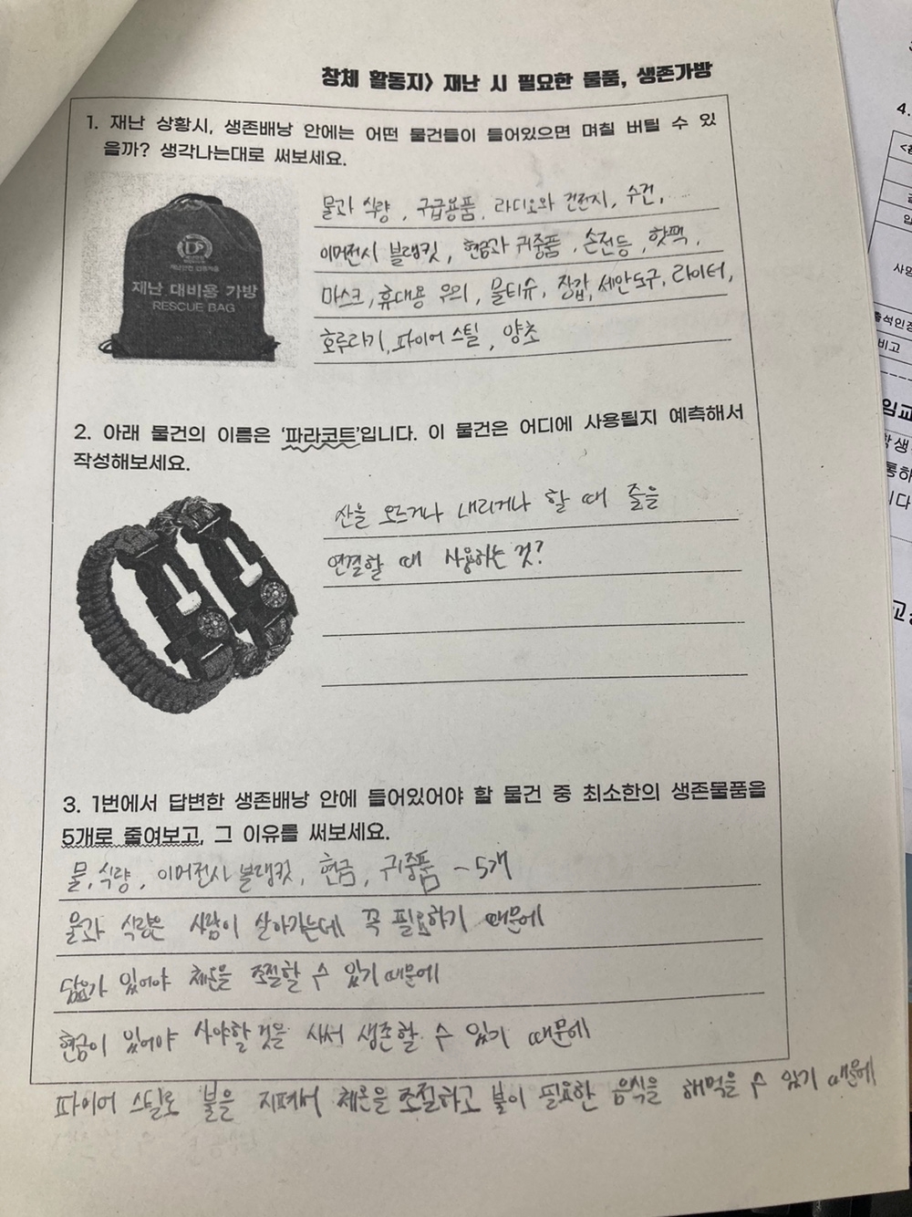 2023. 실물 생존 배낭을 활용하여 재난안전교육을 전교생 실시하였습니다.