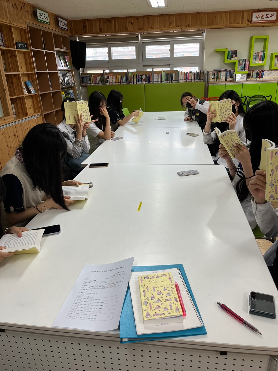 5.11(목) 15:20~16:40 동안 호박꽃 독서토론동아리 학생들이 독서, 책에 대한 에세이 '매일 읽겠습니다'를 읽고 이야기를 나누었습니다.