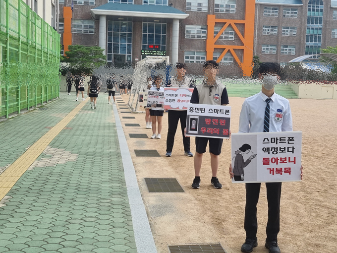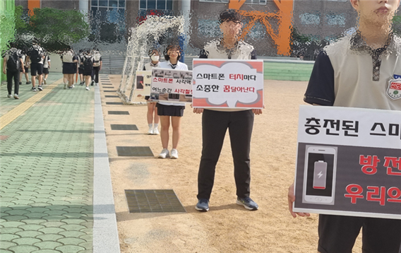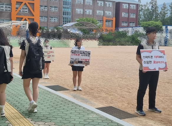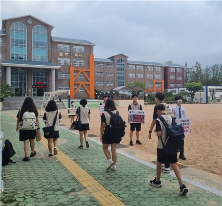 7월 11일 화요일 오전 등교시간에 인터넷 스마트폰 사용 캠페인을 실시하였습니다.
