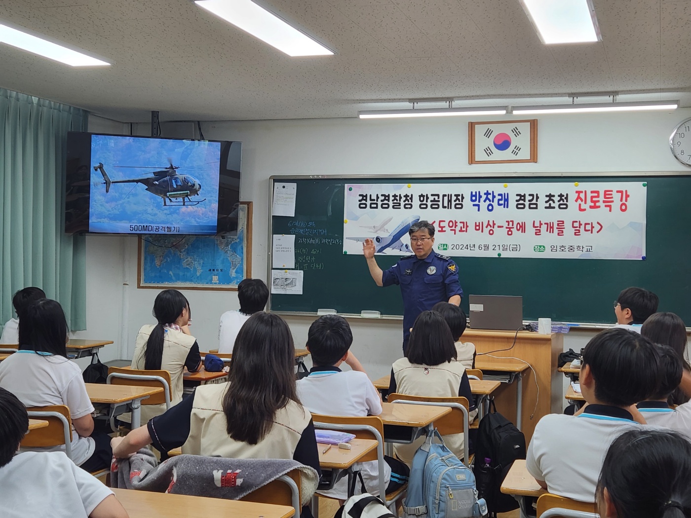 경남경찰청 항공대장 박창래 경감님 초청 진로특강을 진행하였습니다.