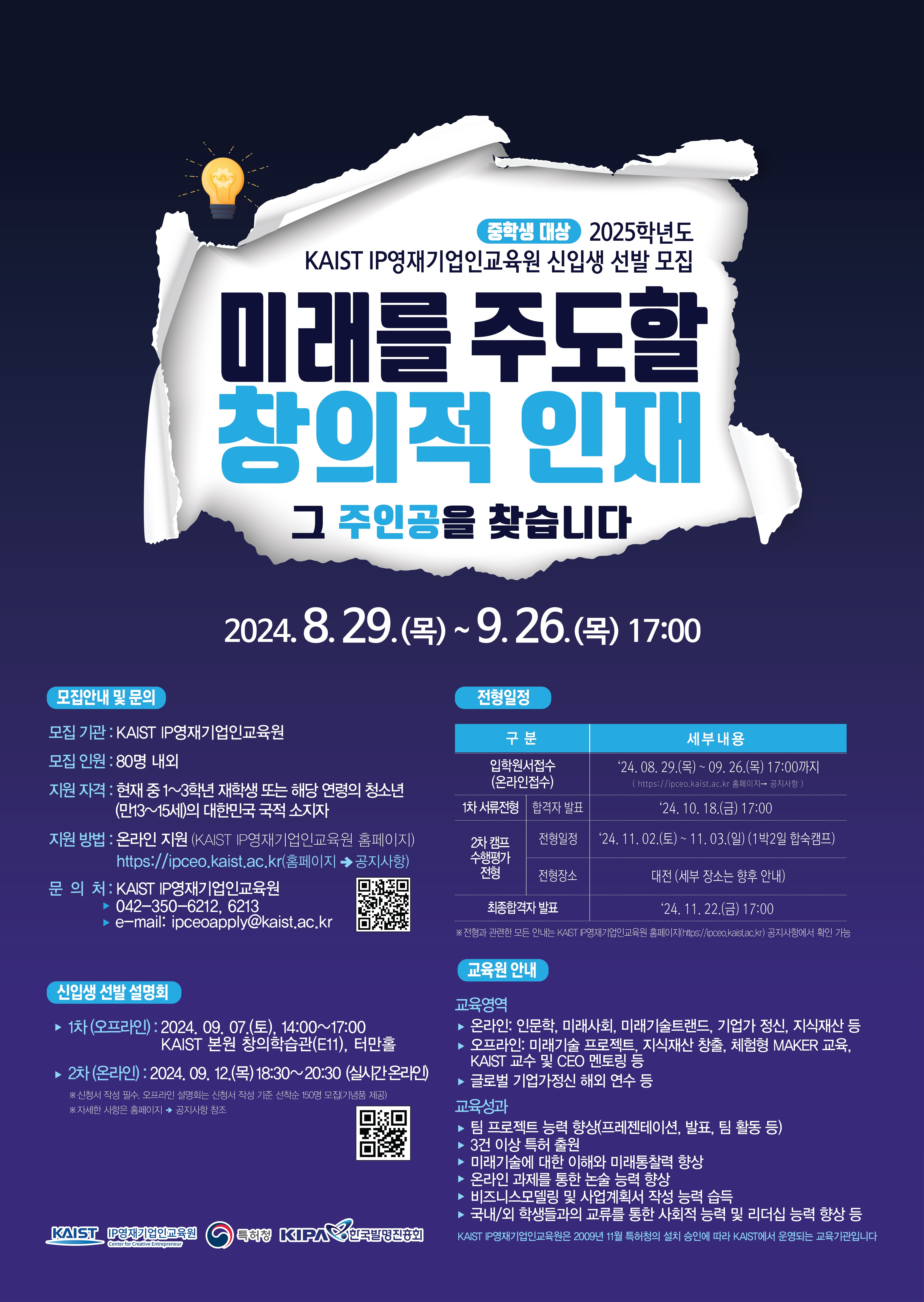 2025학년도 카이스트 IP영재기업인교육원 신입생 선발 모집