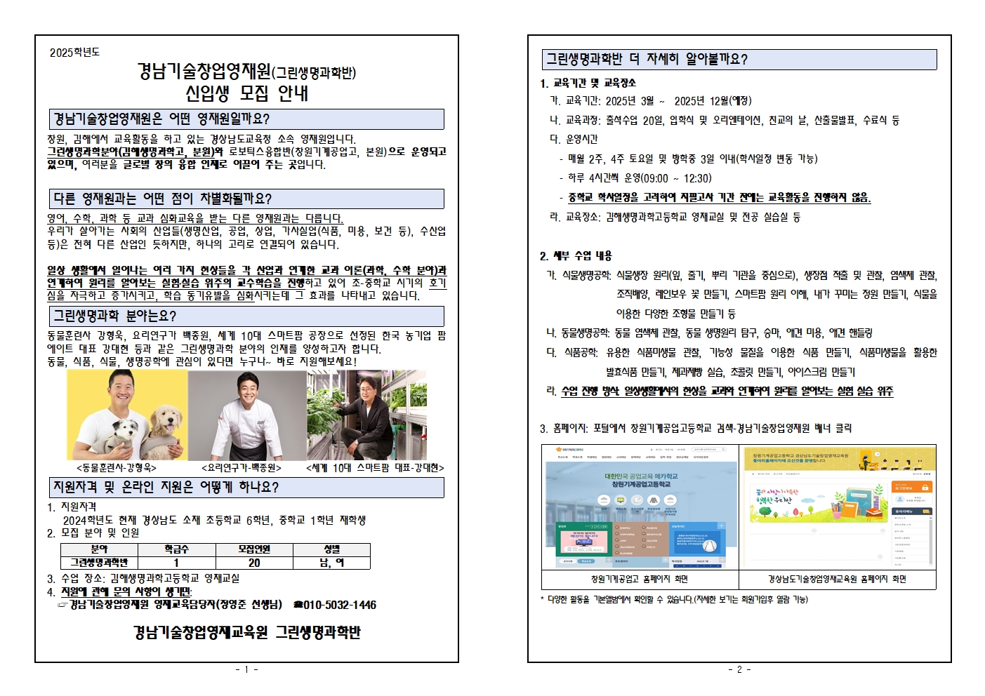 김해생명과학고등학교_2025.경남기술창업영재교육원 그린생명과학반 신입생 모집 안내 리플렛.hwp