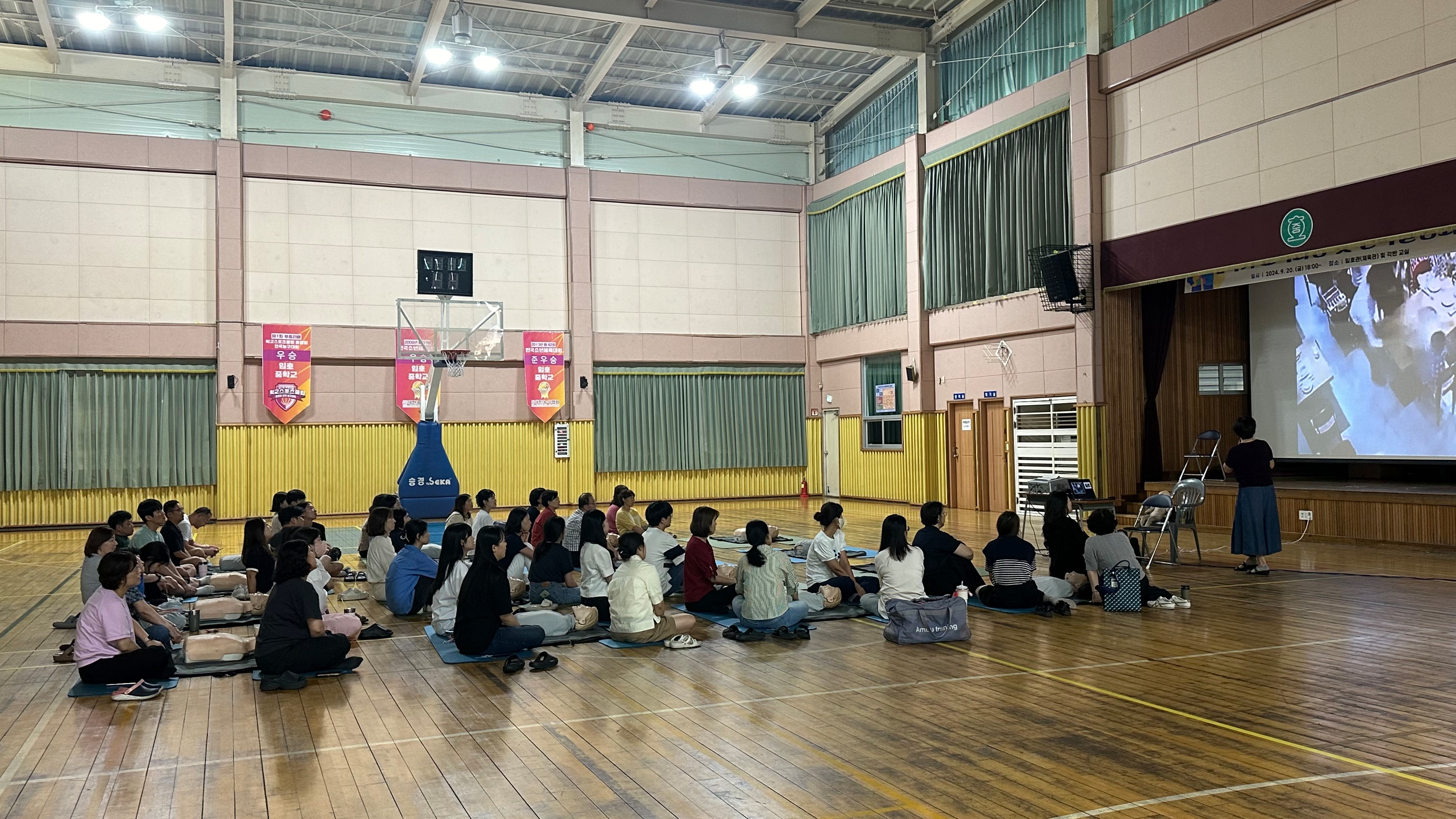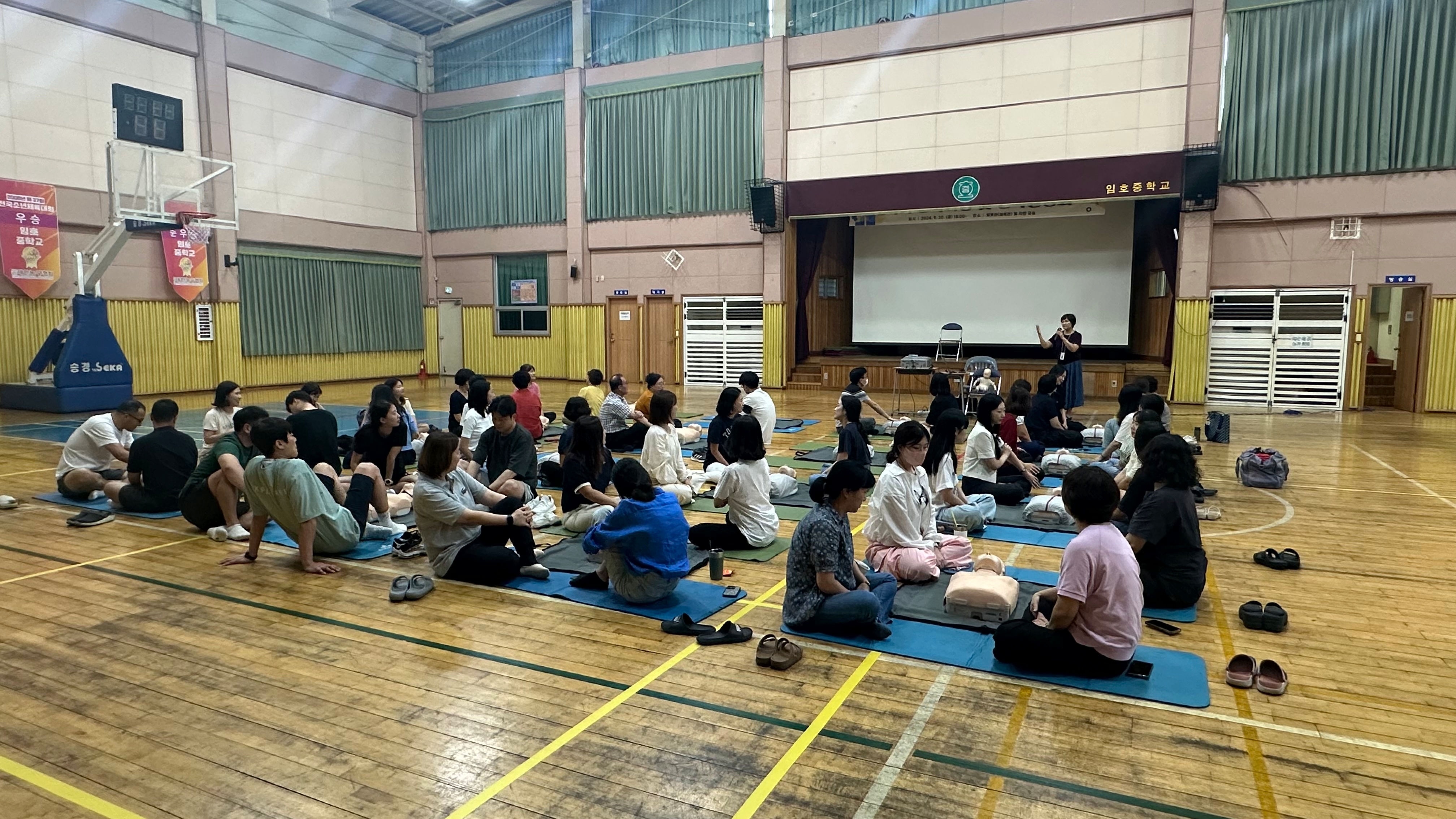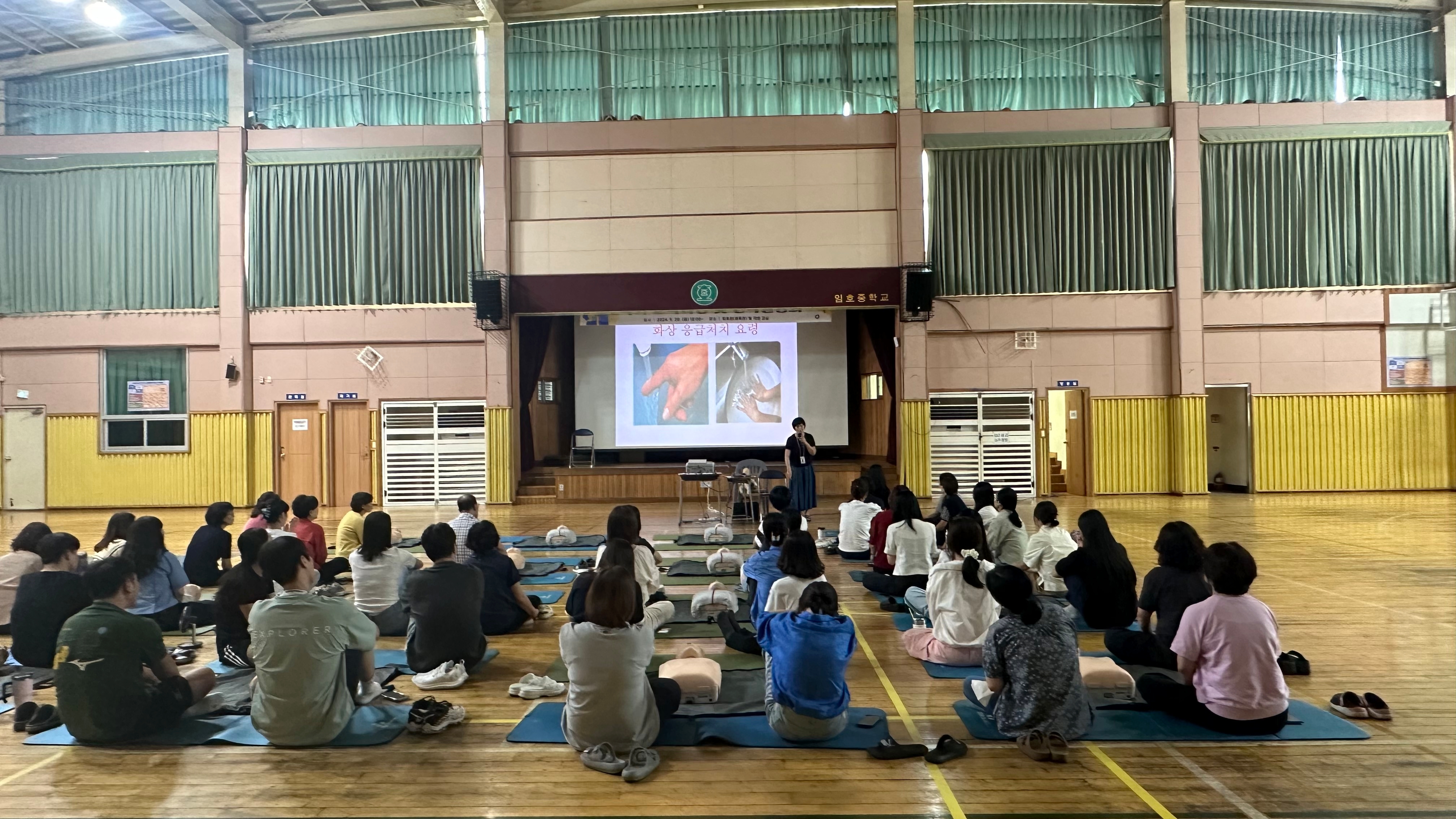 2024.9.12.(목) 13:30 ~ 16:30 (3시간) 에 체육관에서 전교직원을 대상으로 심폐소생술 및 응급처치교육을 실시했습니다.
