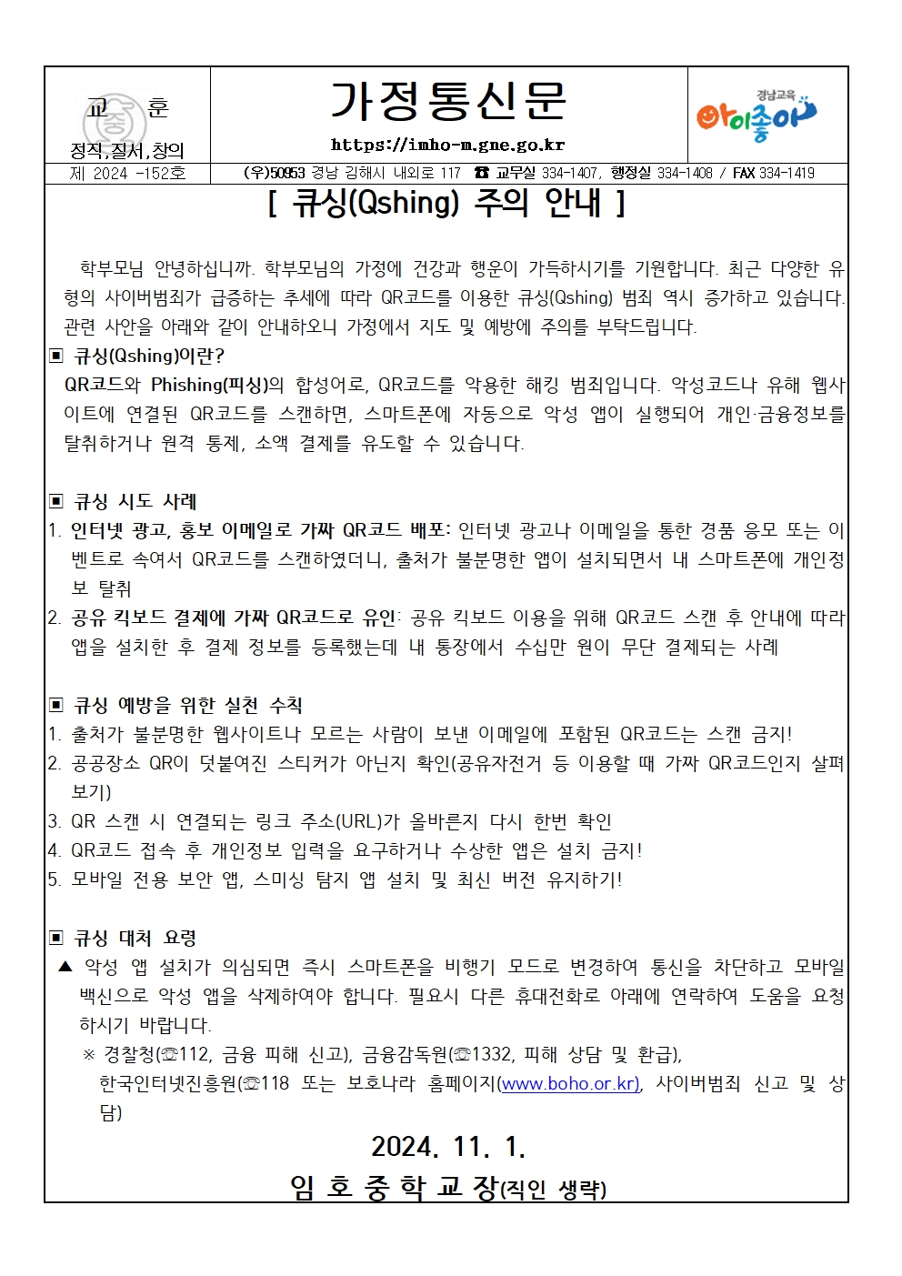 2024학년도 학생 아이북 관리 및 사후관리 절차, 유무상 수리 안내 가정통신문
