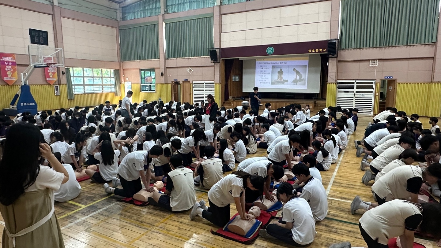 2025.5.27. 7교시 창체시간에 학생 심폐소생술 및 응급처치교육을 실시하였습니다