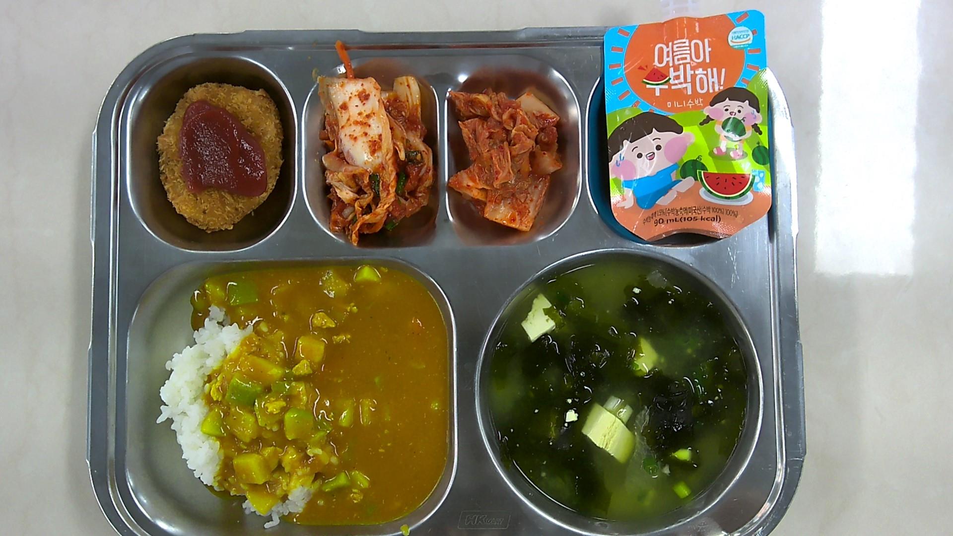 인델리카레라이스(2.5.6.10.12.13.16.18)가스오장국(5.6.7.9.13.18)속배추겉절이(자율)(13)단호박치즈크로켓(1.5.6.12)배추김치(9)수박슬러쉬(13)* 에너지/단백질/칼슘/철830.9/19.0/166.1/3.4