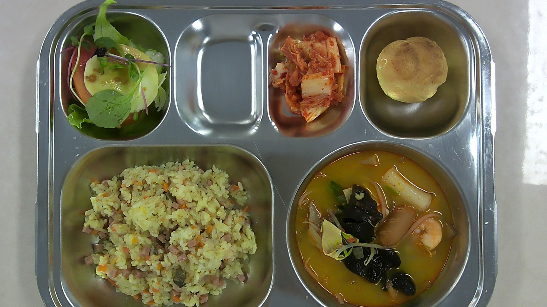 새우살굴소스볶음밥 (1.2.5.6.9.10.13.15.16.18)마라탕 (2.5.6.10.13.15.16.18)카프리제샐러드 (2.5.6.12.13)배추김치 (9)아이스슈 (1.2.5.6)