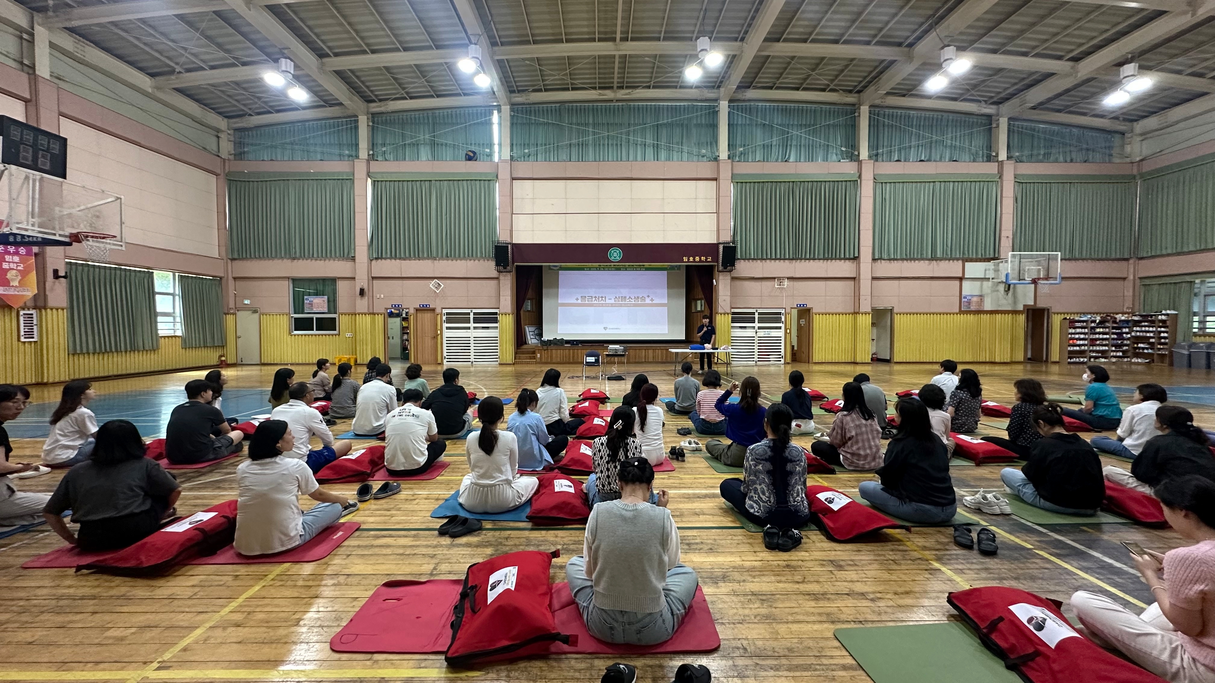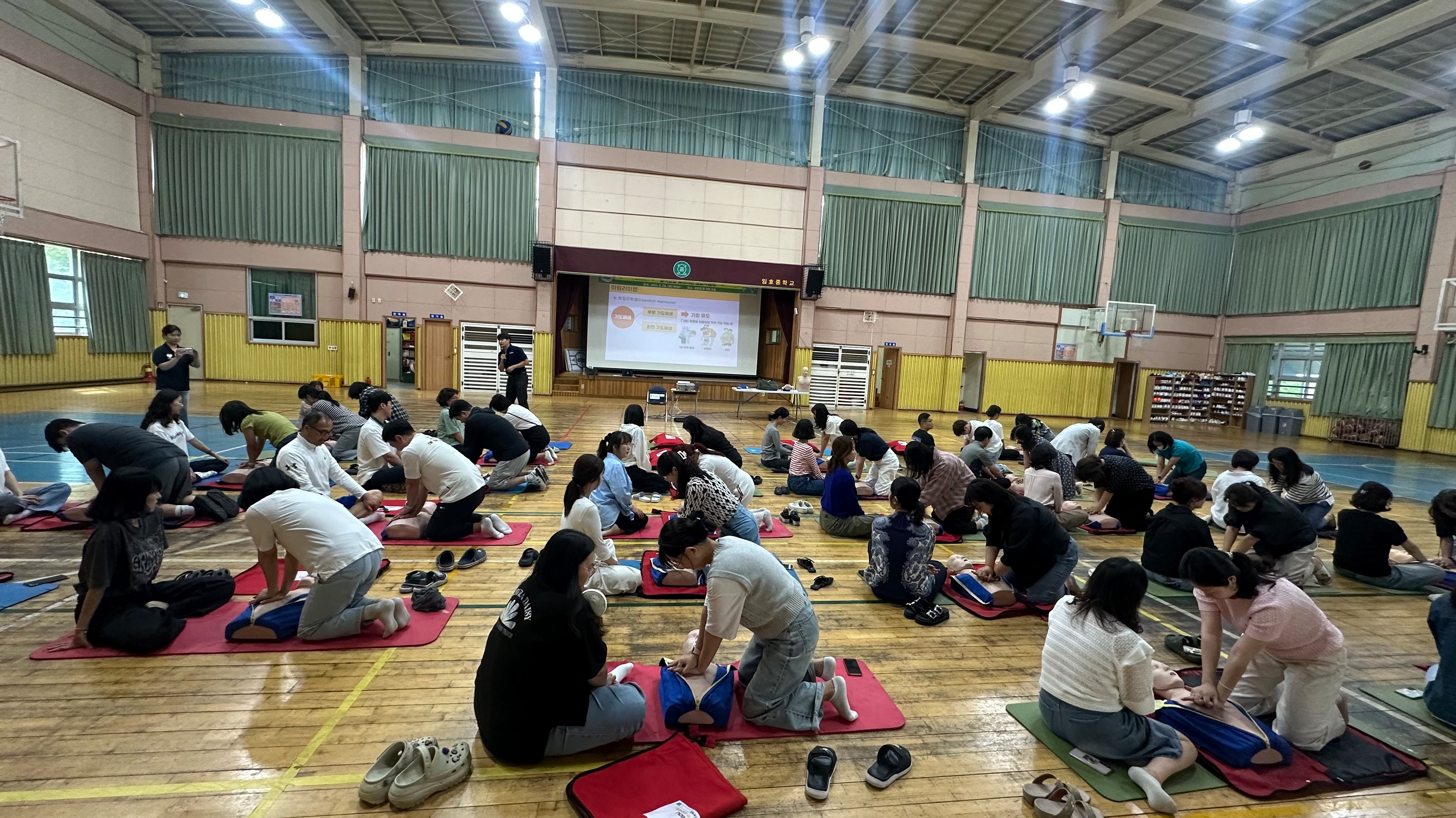 2025.9.22.(목) 13:30 ~ 16:30 (3시간) 에 체육관에서 전교직원을 대상으로 심폐소생술 및 응급처치교육을 실시했습니다.
