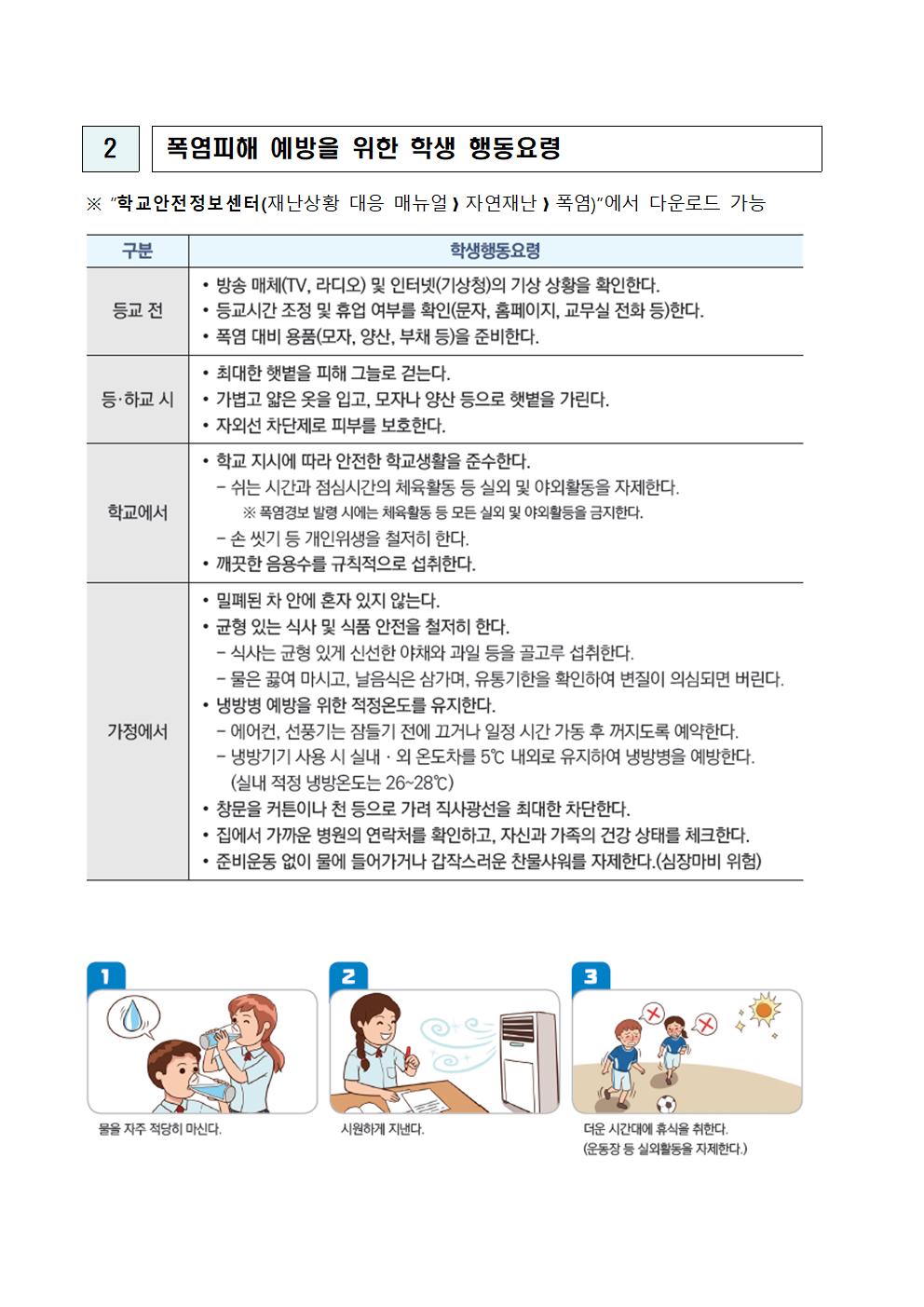 폭염으로 인한 학생·교직원의 온열질환 피해 예방 및 교육활동 피해 저감에 대한 주의를 부탁드립니다.