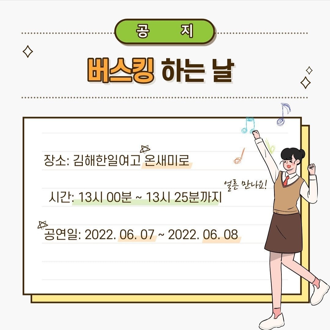 학생회 주관으로 김해한일여고 버스킹 공연이 실시되었습니다.